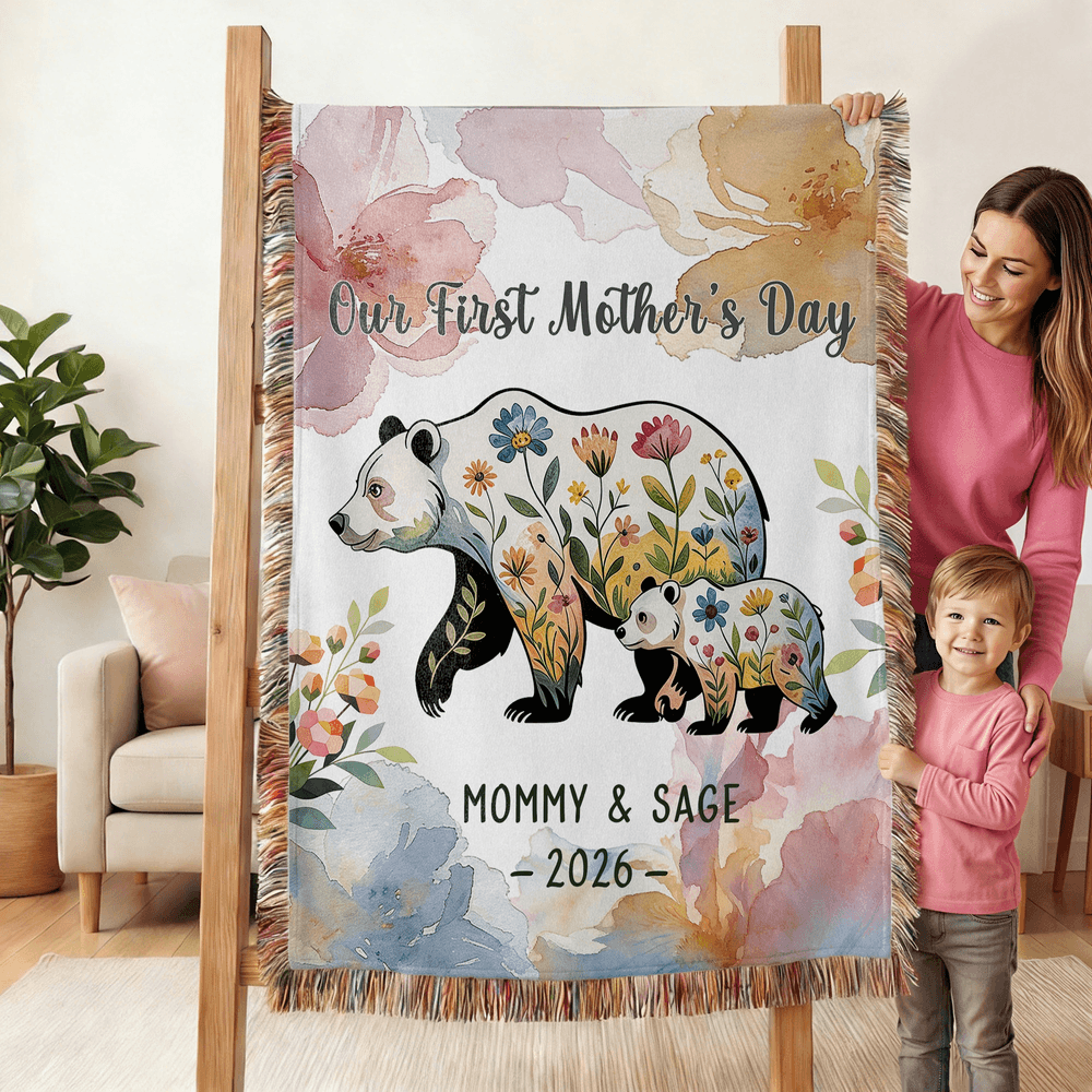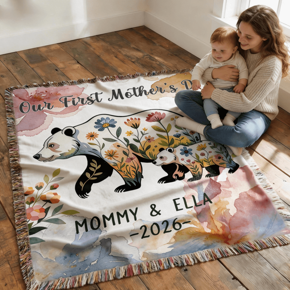 Featuring an adorable mama bear as the main pattern, this blanket can be customized with the names of both mother and child. The warm and loving imagery evokes a sense of family companionship, making it a Personalised and thoughtful gift.