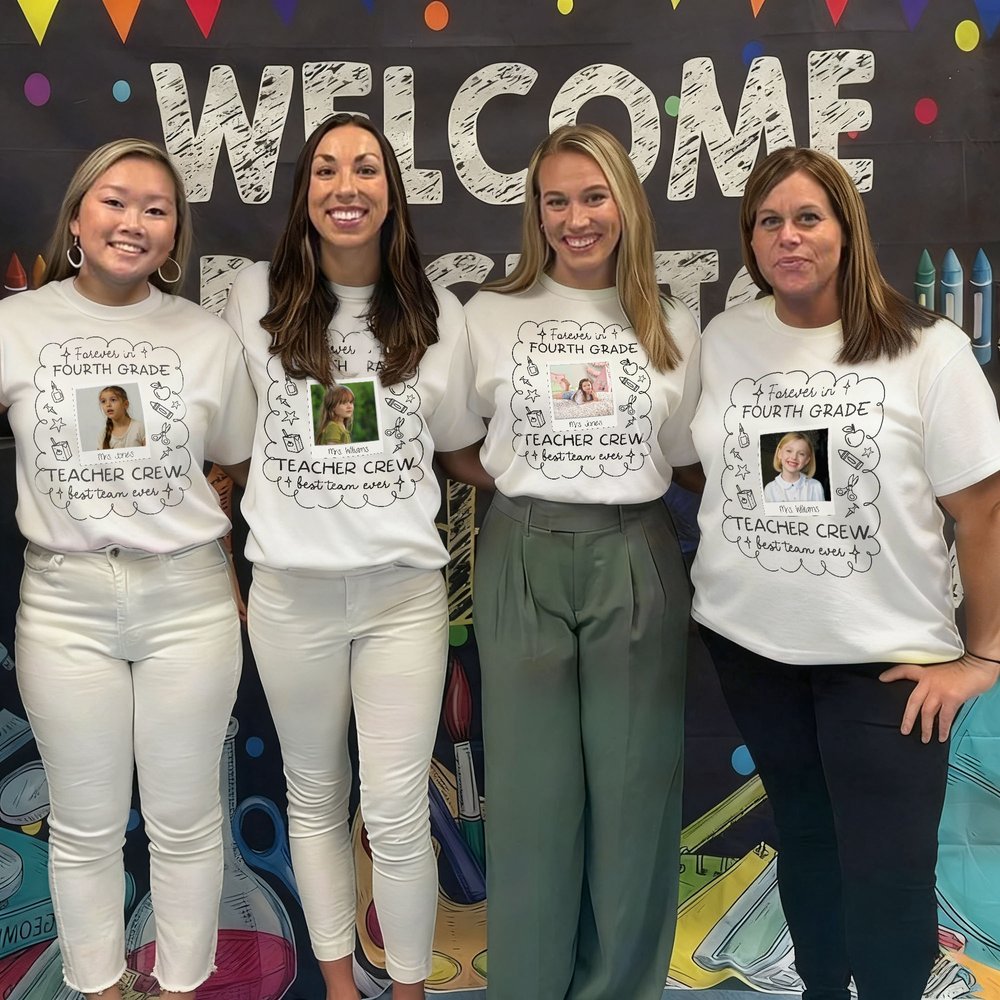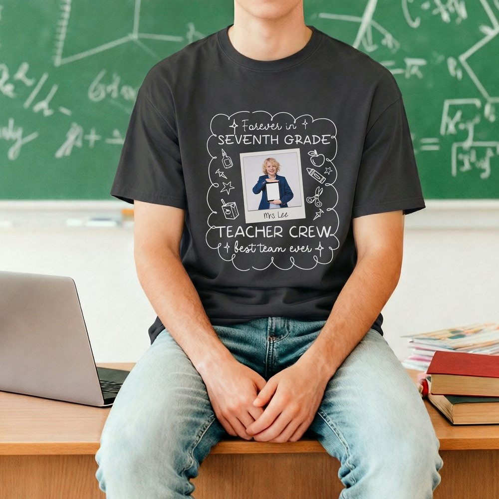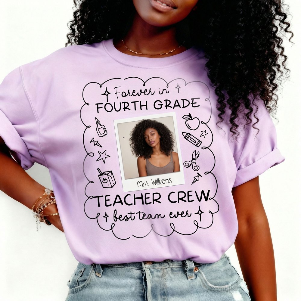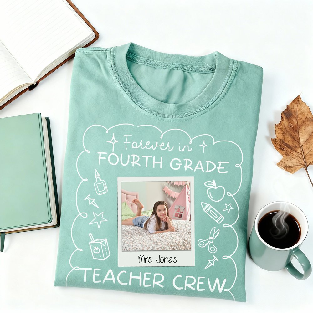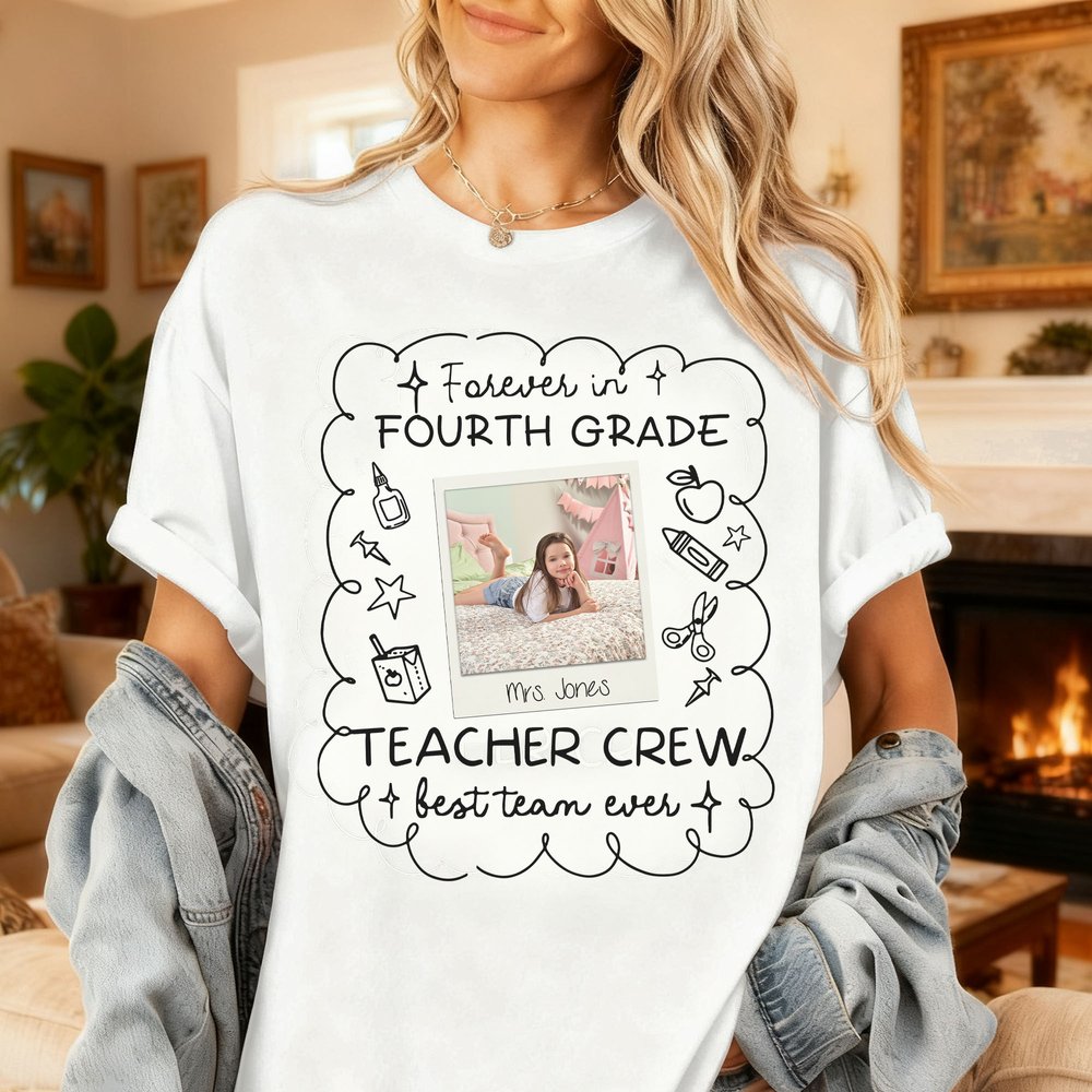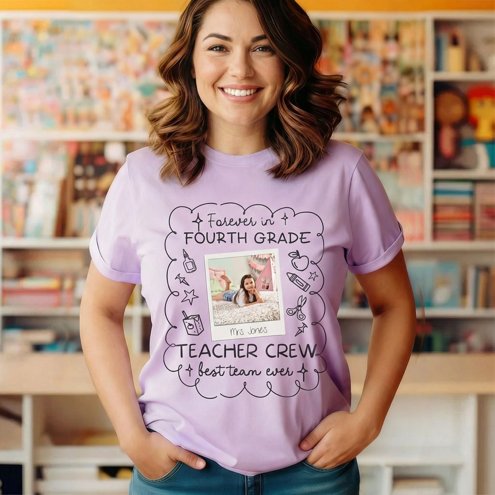 Personalised Forever In Teacher Crew Photo Design Multicolor 100% Cotton T-shirt with Text Teacher Appreciation Back to School Gift for Teachers