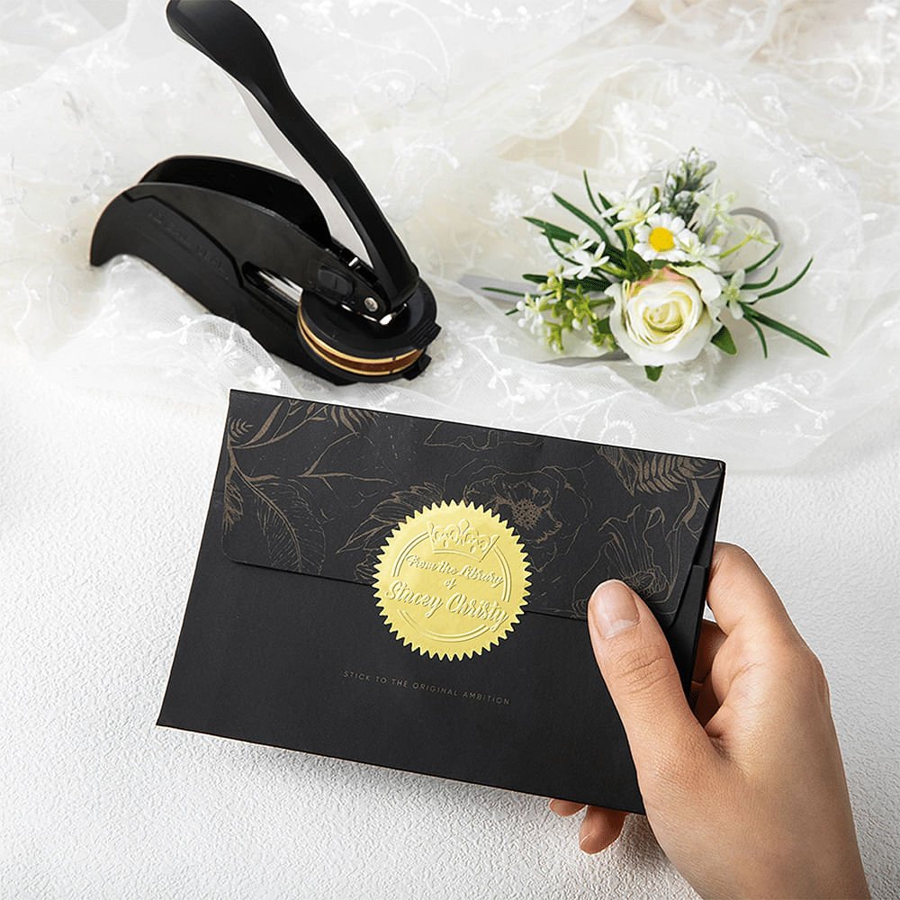 Our book embosser made with high-quality materials to ensure durability and longevity. It is designed to withstand frequent use and produce crisp, professional-looking imprints every time. The handle is hand-held for ease of use, allowing for precise placement and a comfortable grip. It is perfect for adding a personal touch to invitations, personal signatures, letterheads, envelopes, etc. In addition, the product comes with a storage bag.