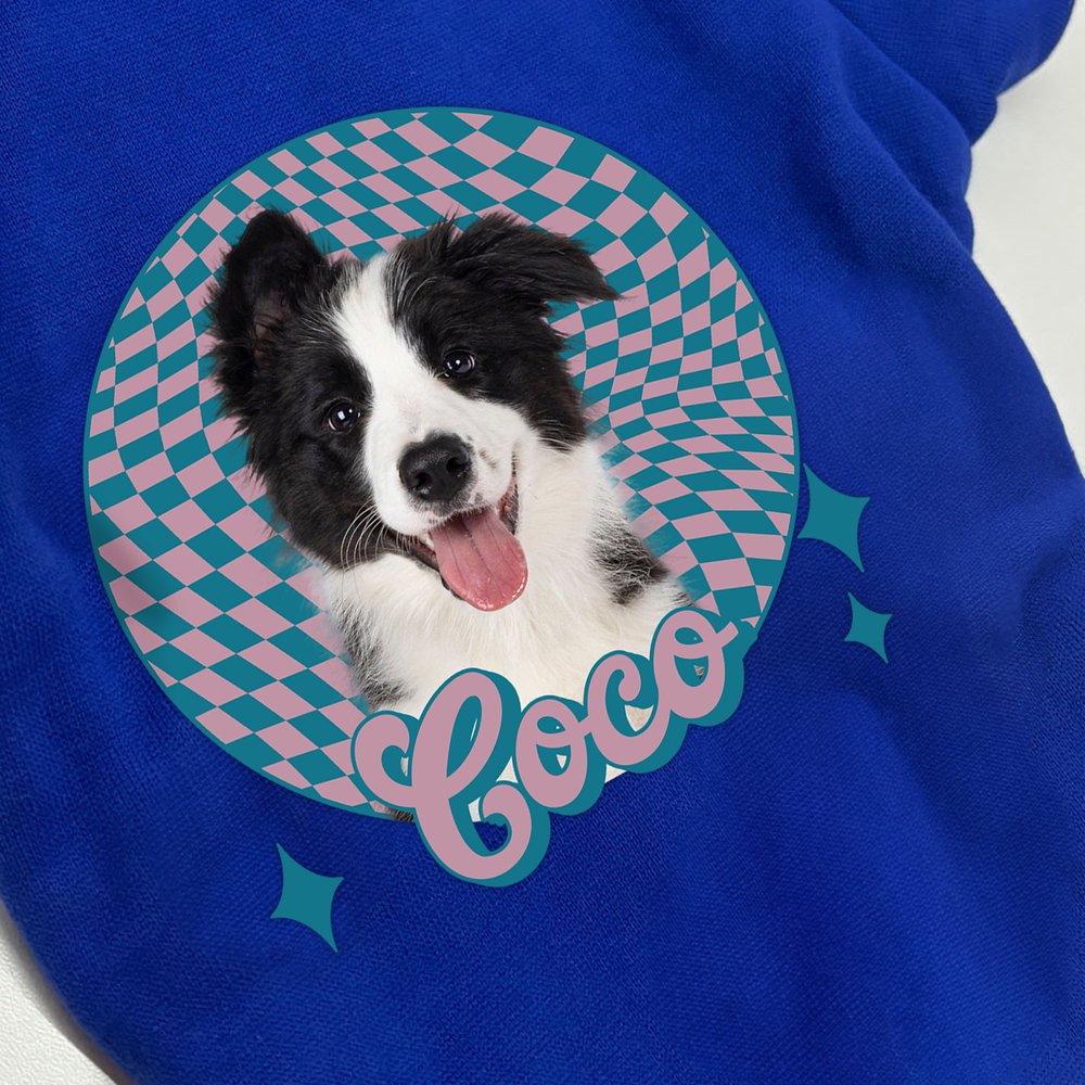 This stylish pet hoodie features a fun retro design, perfect for showcasing your furry friend’s personality. It offers full personalization: add your pet’s photo, name, and choose from 6 vibrant colors and 6 decorative patterns to create a one-of-a-kind look.