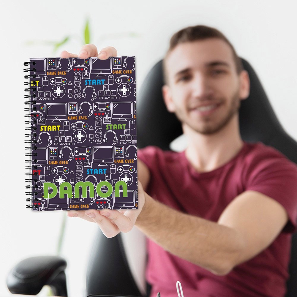 Personalised Game Pattern A5 Spiral Notebook with Name and 120 Lined Pages Back to School Birthday Gift for Students Game Lovers