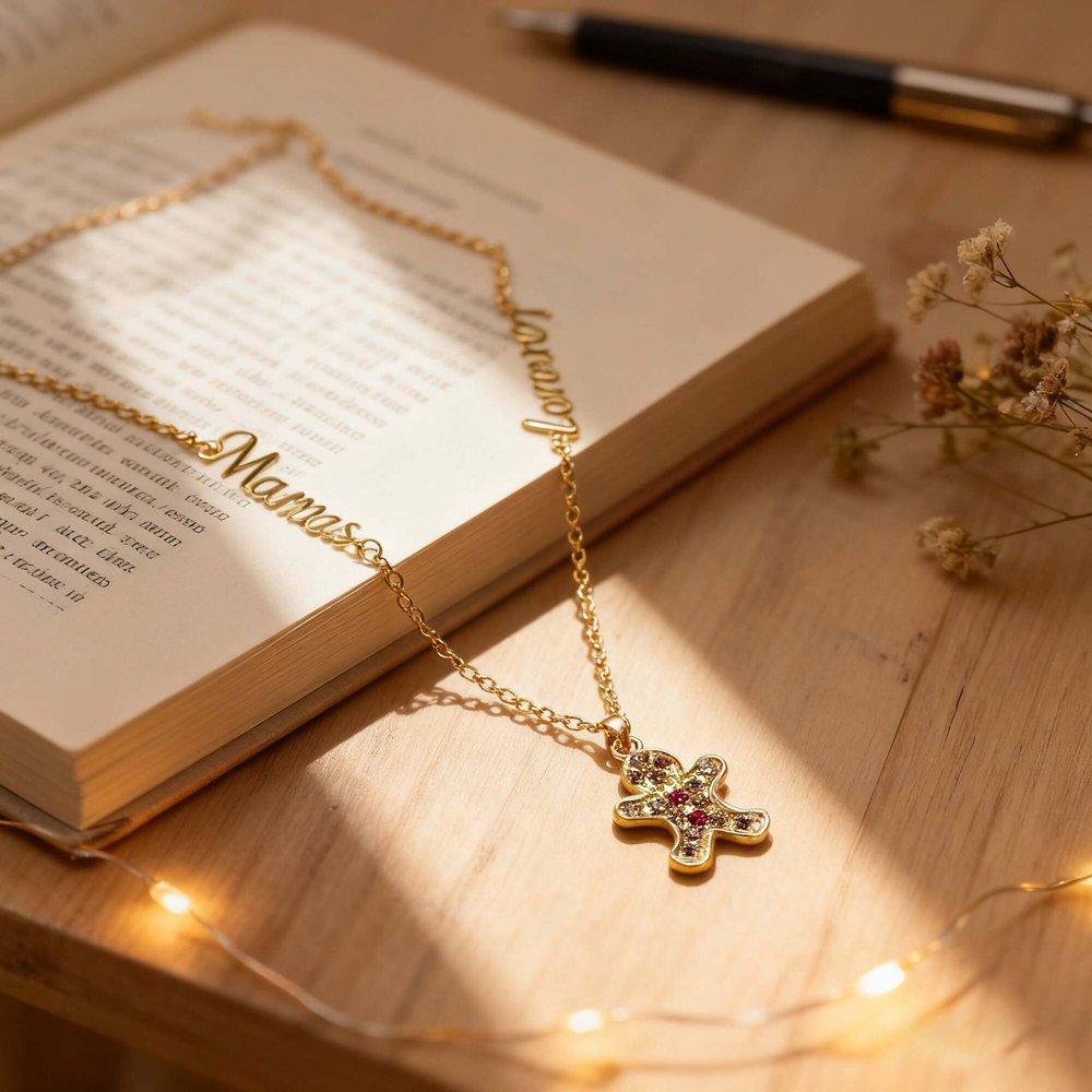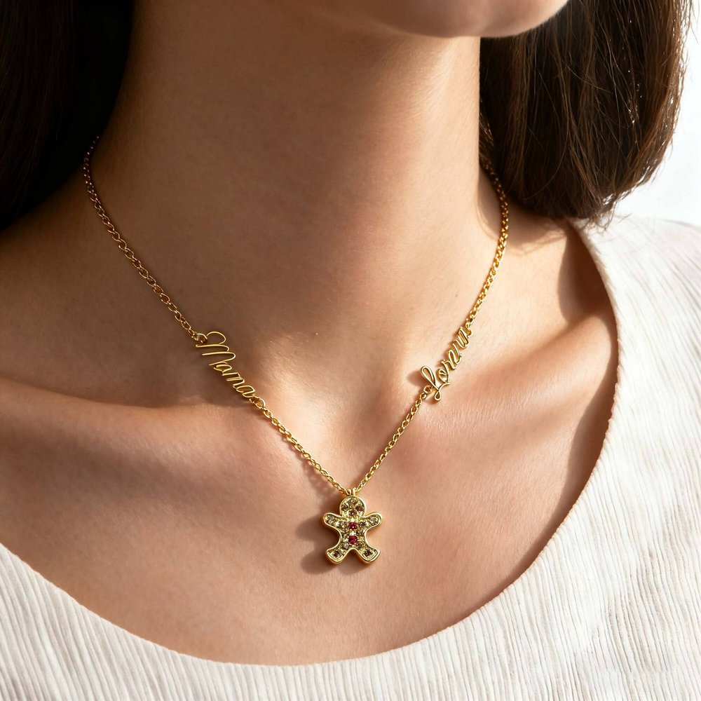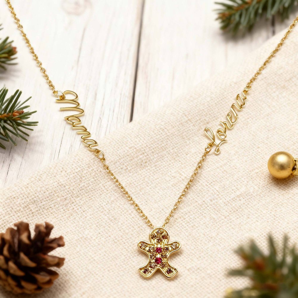 Featuring an adorable gingerbread man design, this necklace exudes wintery charm. The chain can be customized with your name and a birthstone corresponding to your birth month, transforming it from an ordinary accessory into a "Personalised memory carrier."