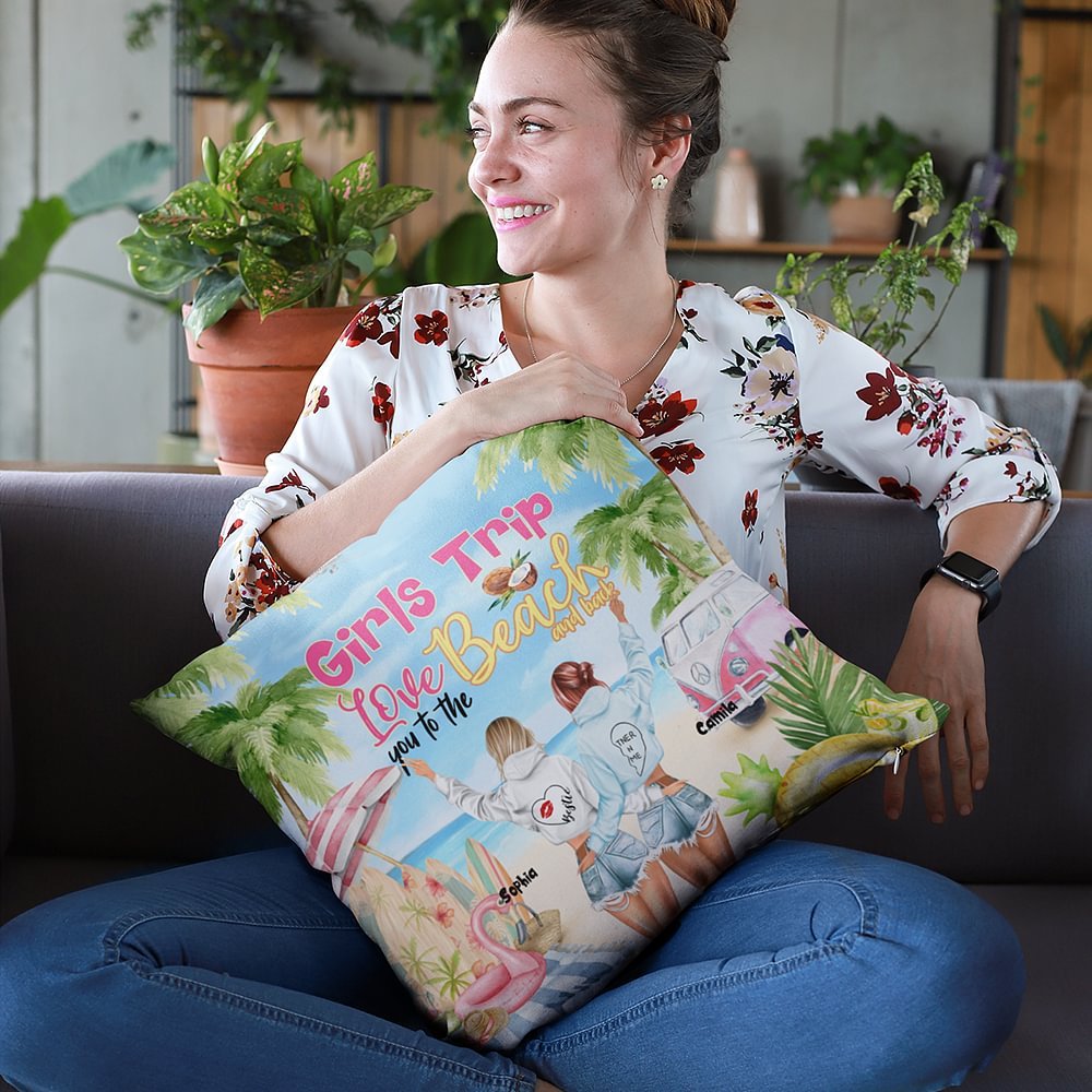 Personalised Girls Trip Love You to the Beach and Back Throw Pillow Cover Bestie Gift for Women Sofa Decor