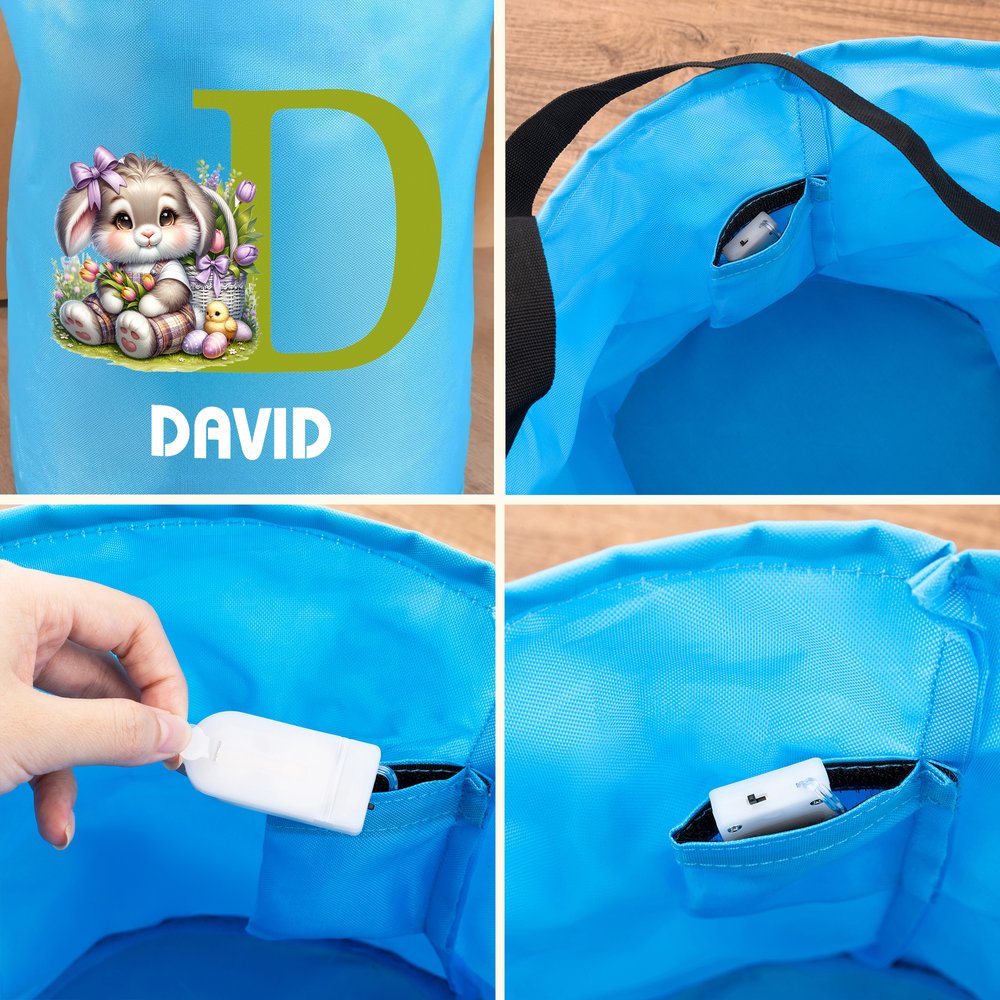 Personalised Glowing Cartoon Cute Bunny Basket with Name and Initial Easter Party Easter Gift for Kids Family