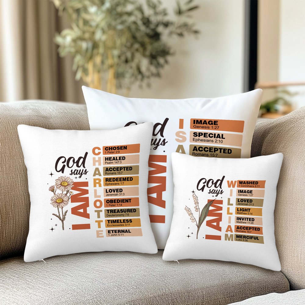 This Bible-themed custom pillow cover features a unique design. It disassembles the letters of a name, with each letter corresponding to the meaning of Bible verses, turning each letter into a "faith code". You can also customize it with a birth flower print. Through this exclusive customization, users can deeply connect with biblical teachings and integrate God's promises and blessings into daily companionship.