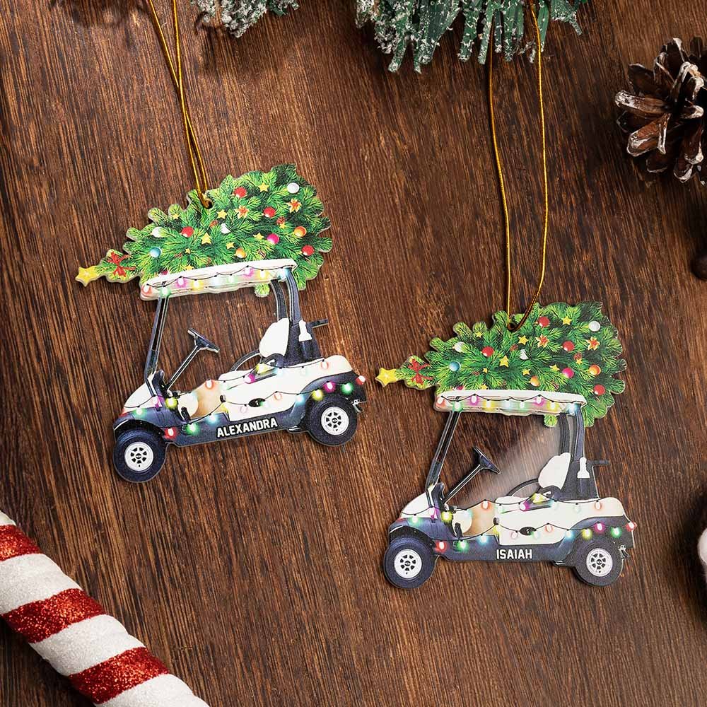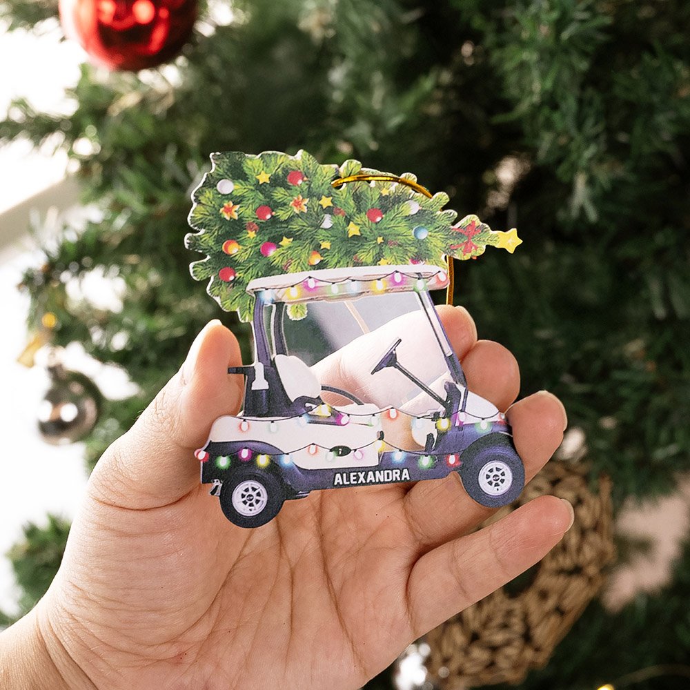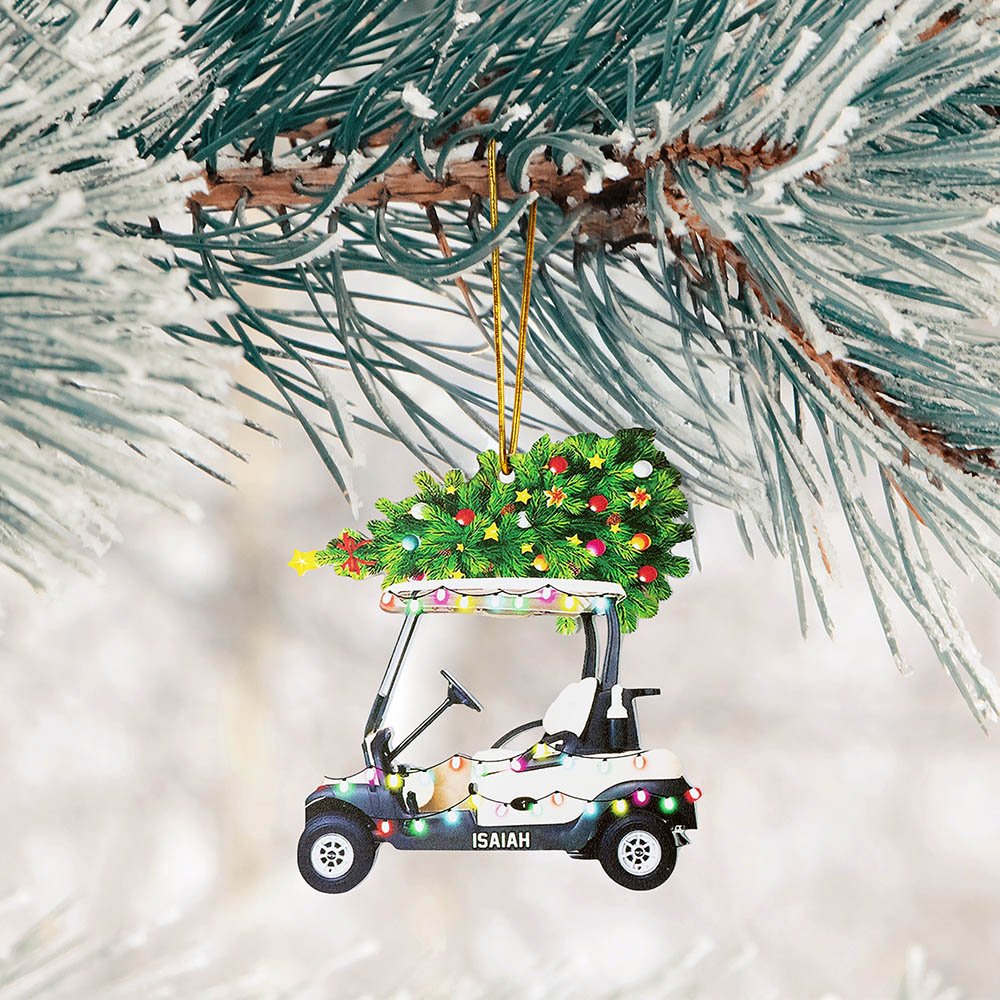 With its festive golf cart design adorned with a Christmas tree and colorful lights, this acrylic ornament brings a touch of holiday cheer and whimsy to any Christmas tree. Customizable with a name or special message, this ornament becomes a unique and cherished keepsake that captures the season's spirit.