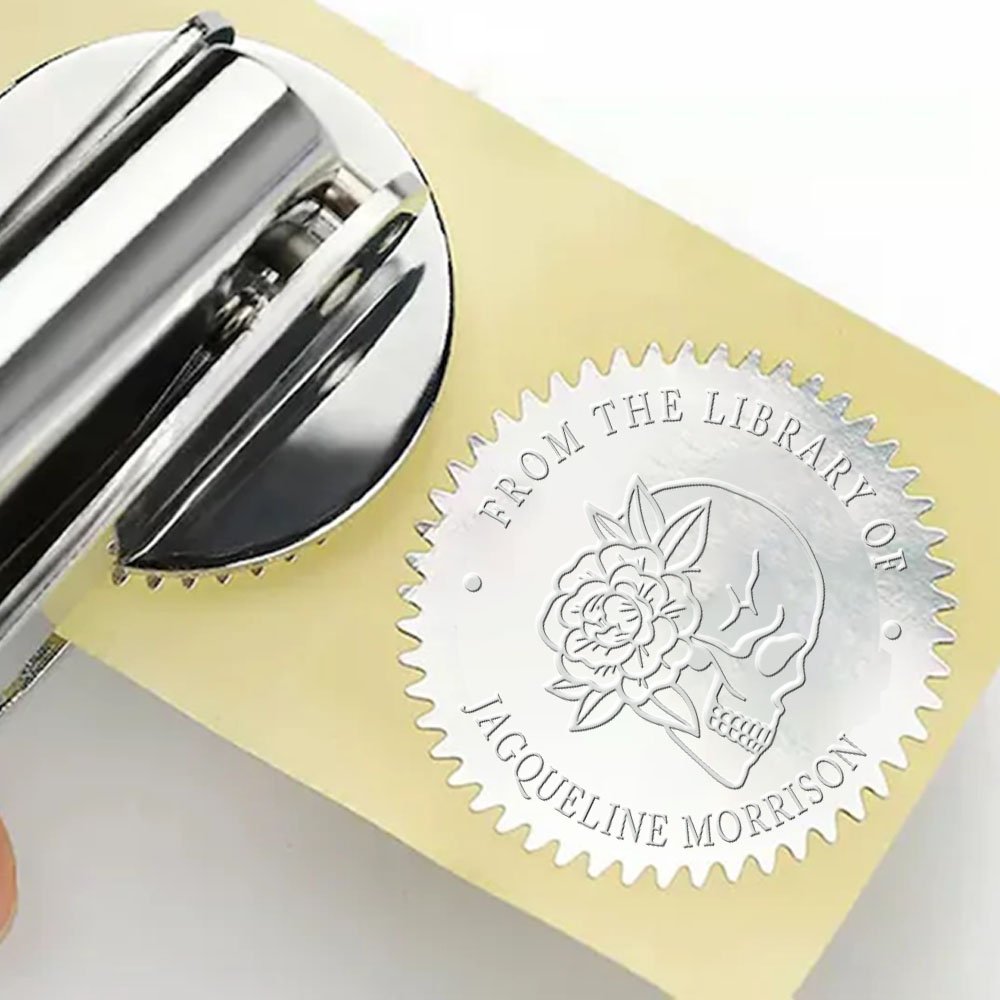 Our embosser features a captivating combination of a book and a gothic skull or gothic skull and flower design, capturing the essence of mystery. The intricate skull skeleton motif adds a touch of Gothic elegance to your belongings, ensuring they truly stand out from the crowd.