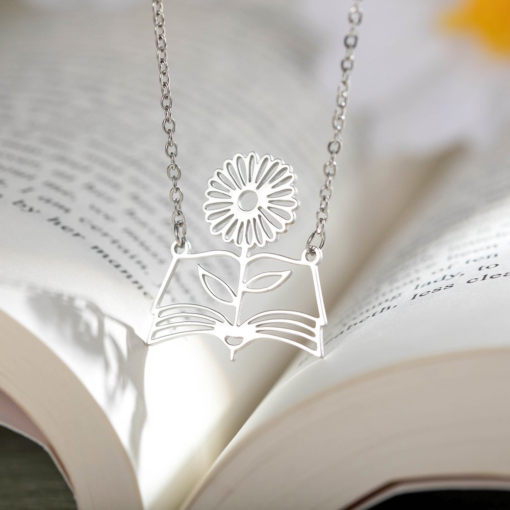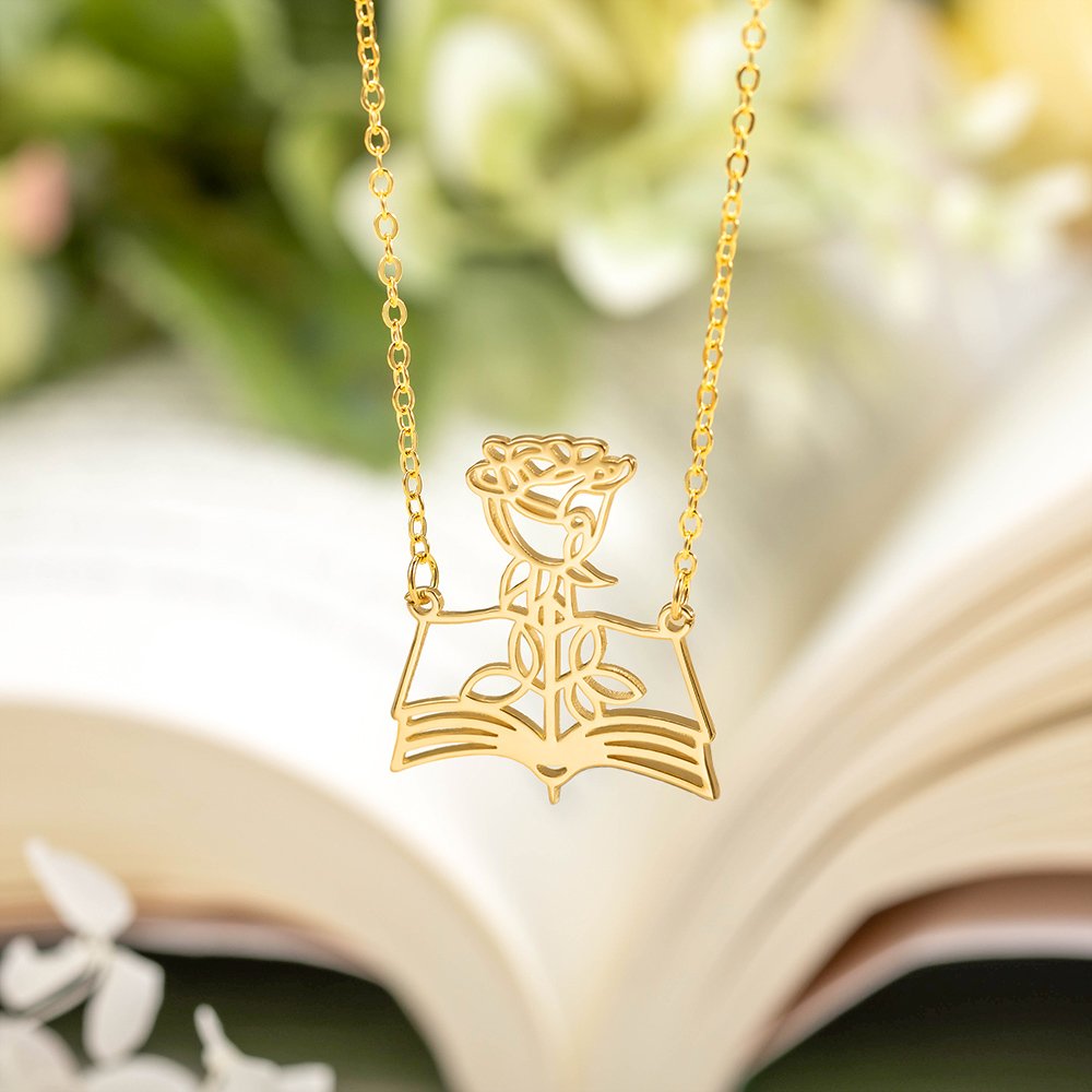 The necklace features an open book pendant with intricate details, symbolizing the love of literature and storytelling. In addition, there are birth flowers for you to choose from. The birth flower represents a special meaning, which can be incorporated into a piece of jewellery that holds a unique significance.