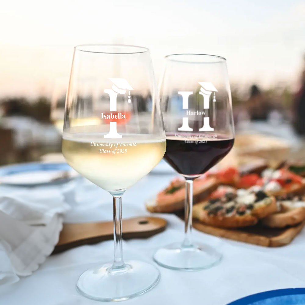 This set features a Personalised initial embellished with a commemorative graduation cap. The stylish design is even more refined and striking against the clear glass, creating a perfect harmony of simplicity and beauty. It also can be customized with your school name and a text, reflecting your unique personality. In addition, the custom content on the coaster is the same as the glass.