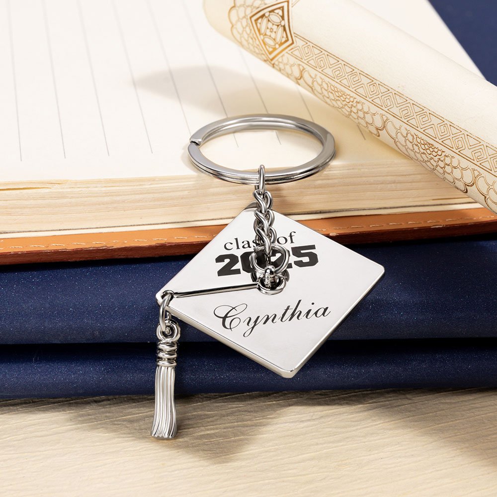 A graduation cap inspires this keychain, and the tassel pendant design makes it more youthful and energetic. In addition, you can customize your name and year, making this product a meaningful graduation commemorative gift.