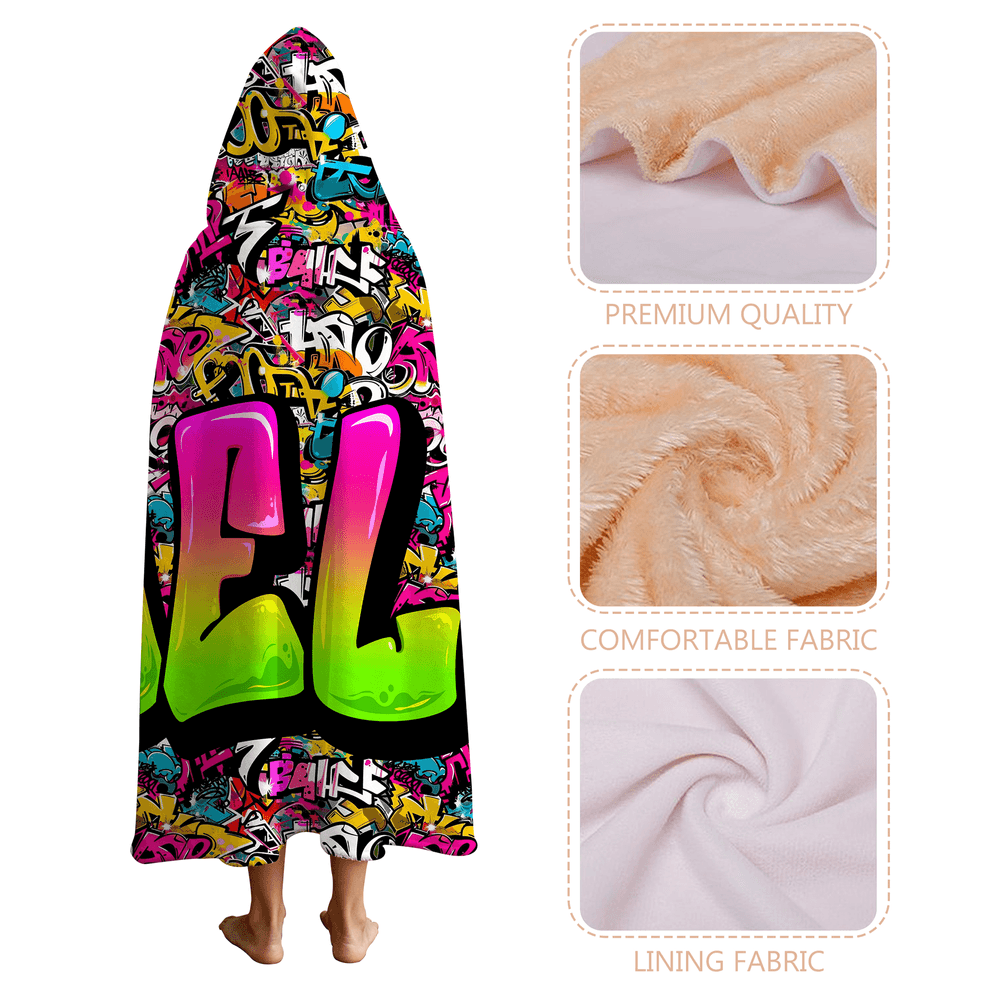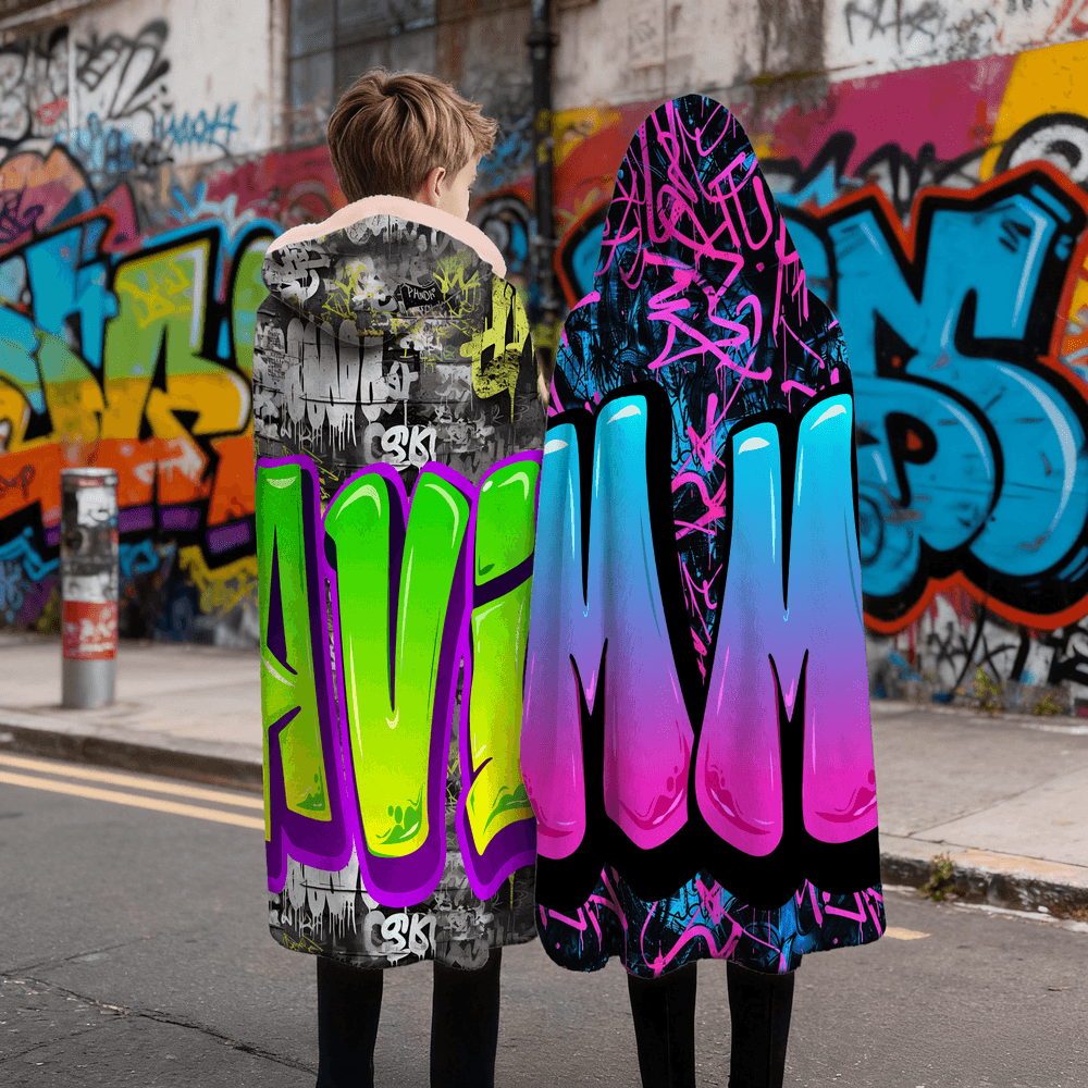 This blanket combines the free spirit of street graffiti with a Personalised touch, featuring bold, color-clashing letters set against a full-printed urban backdrop. Every inch radiates an unmistakable cool vibe—from neon gradients to expressive typography—creating a wearable art piece that makes a striking visual statement in your daily life.