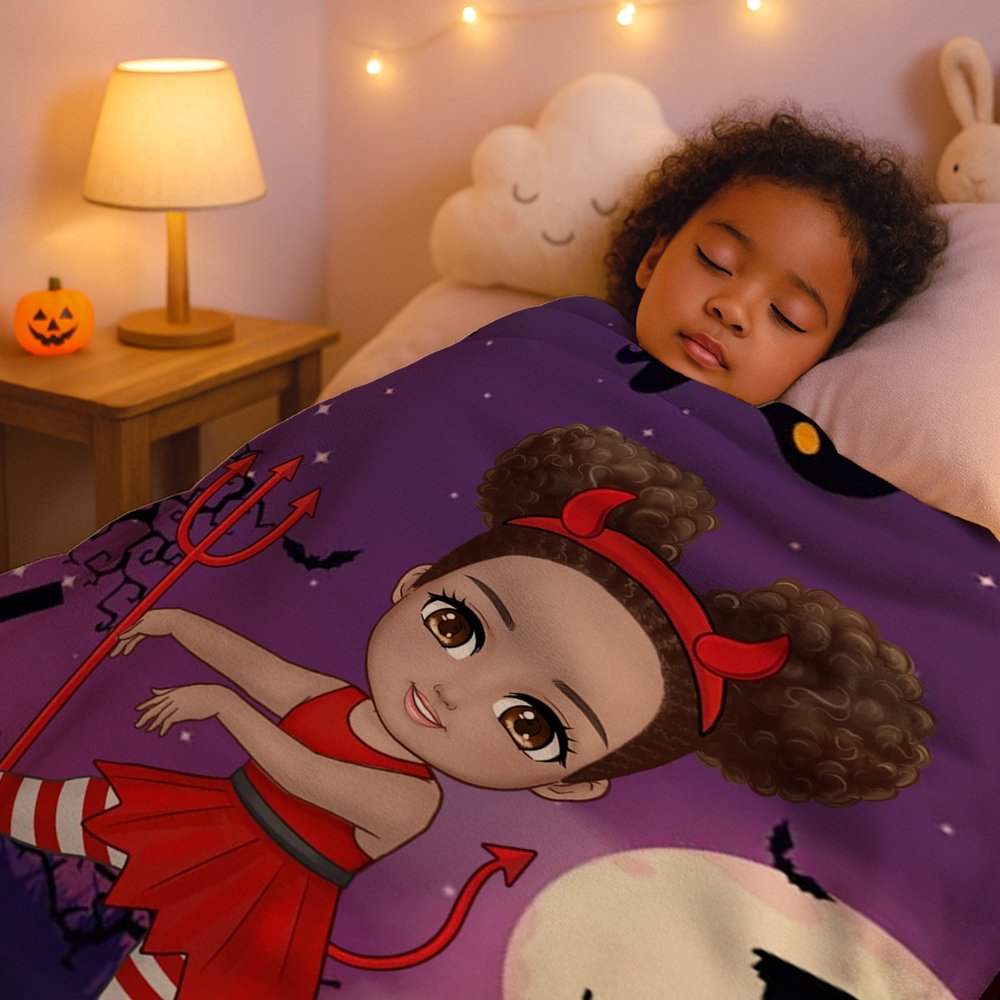Personalised Halloween Theme Cartoon Character Soft Throw Blanket with Name Bedroom Decor Halloween Party Gift for Boys Girls