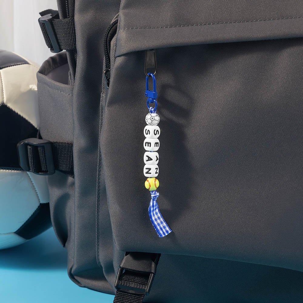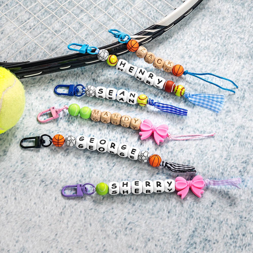 Celebrate your love of ball sports and bows with this keychain. This special keychain allows you to customize the ball pendant or bow to match your favorite ball sport. In addition, the letters of your name will be printed on the beads and strung together to make them unique.