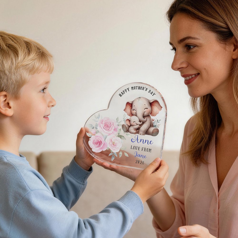This acrylic plaque is beautifully designed in a heart shape, and adorned with cute animals, flowers, and a Happy Mother's Day quote, perfectly expressing the deep love for mom. You can customize it with mom's and your kid's name to create a meaningful keepsake.