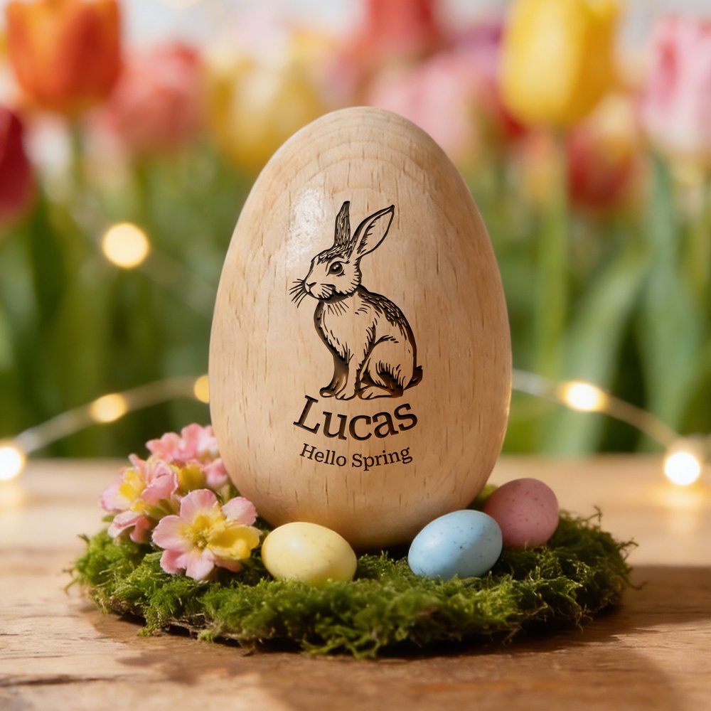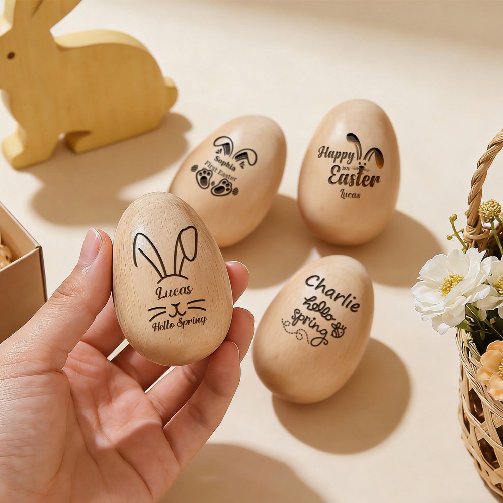 Made from high-quality, natural wood, each egg is carefully polished to ensure a smooth, safe surface free of splinters. The unique wood grain adds a warm touch, while the engraving process guarantees that the names and designs are lasting and resistant to wear, making them treasured keepsakes for years to come.