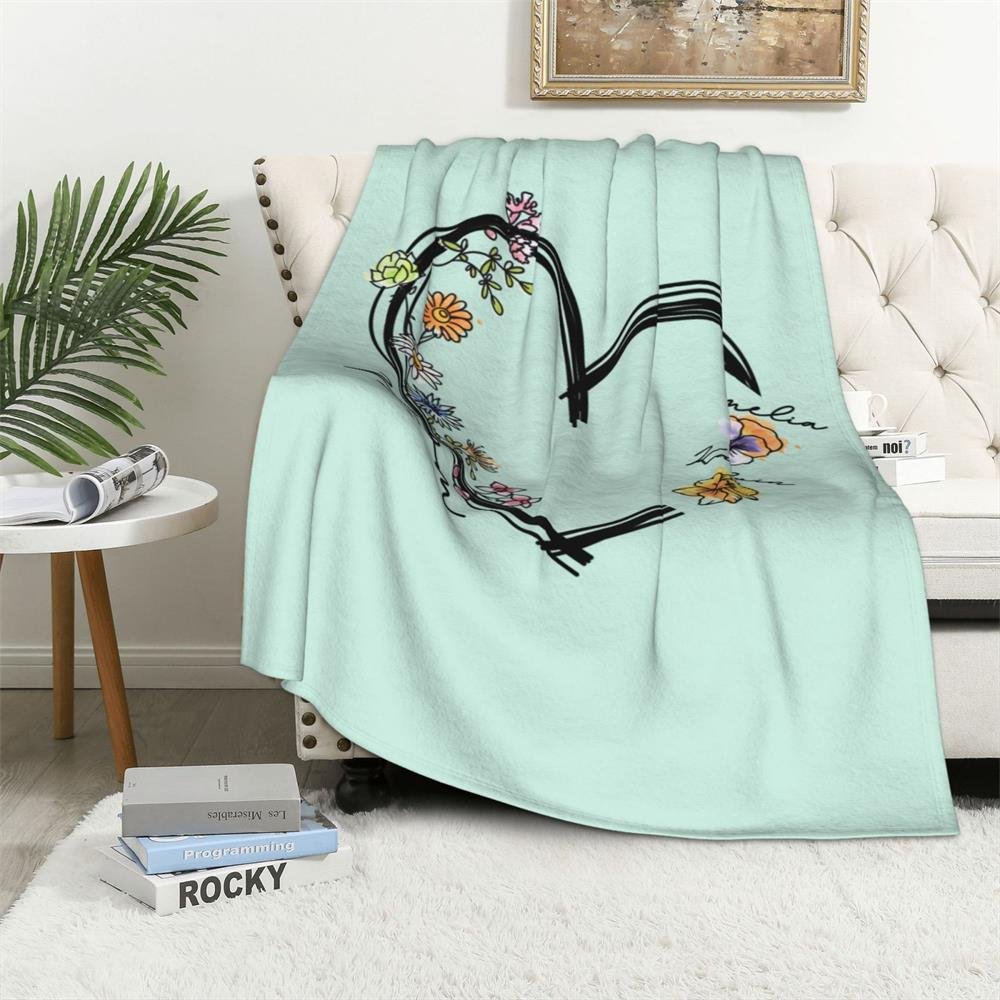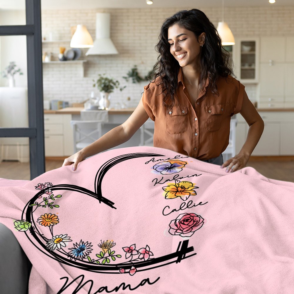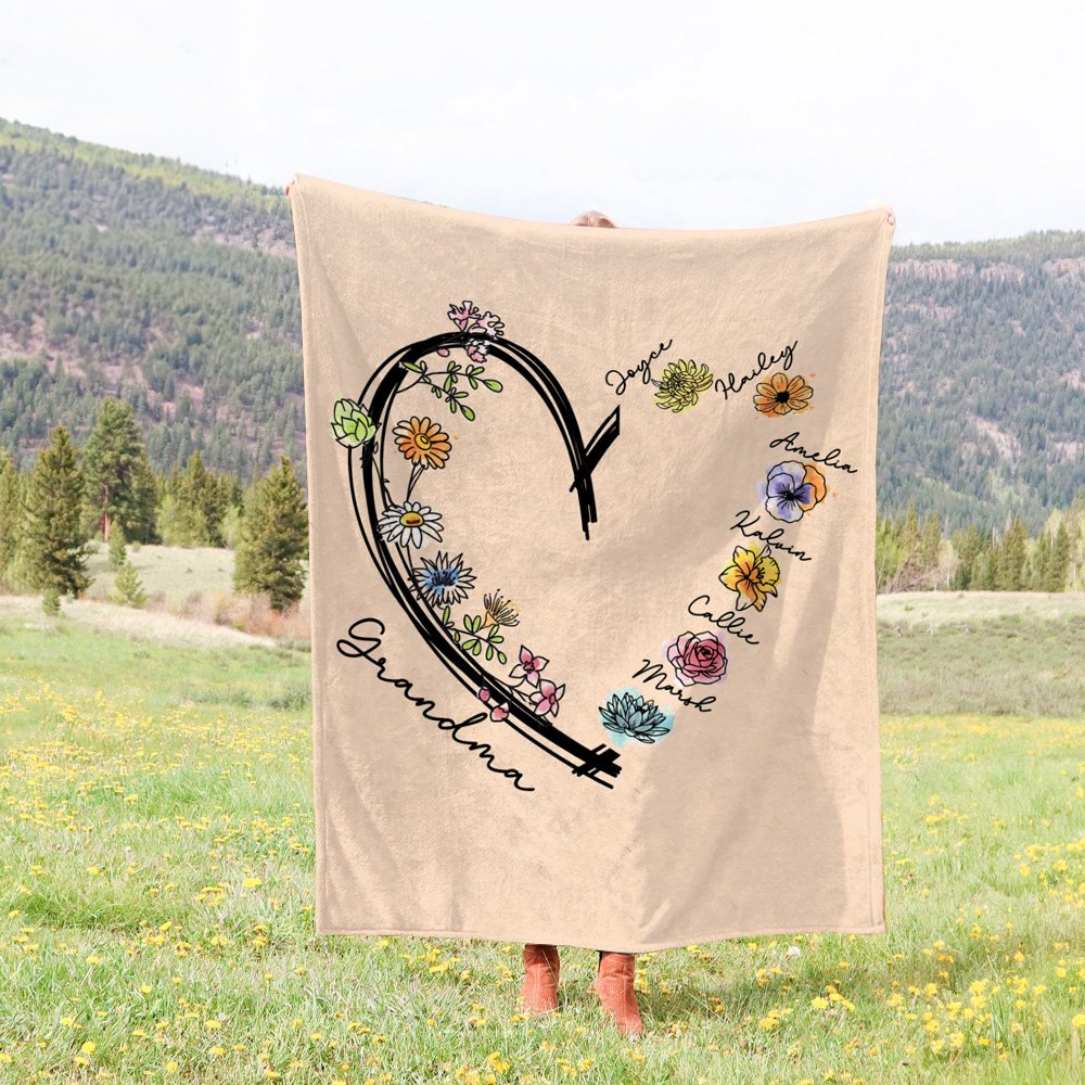 This cozy throw features a heart-shaped design that can be customized with 1-6 names and their corresponding birth flowers. Each flower symbolizes the love and bond between family members, creating a sentimental piece that means so much more than just a blanket.