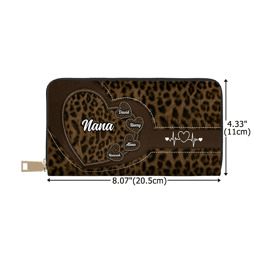Crafted from high-quality PU leather that presents a delicate and realistic leopard grain, soft to the touch yet structured in form. The name area is created using UV printing technology, ensuring lasting clarity and fade resistance while standing up to wear and scratches. The metal zipper is treated for rust prevention, and the lining is tightly stitched for durability—ensuring this wallet withstands daily use and stays by Grandma's side for years to come.