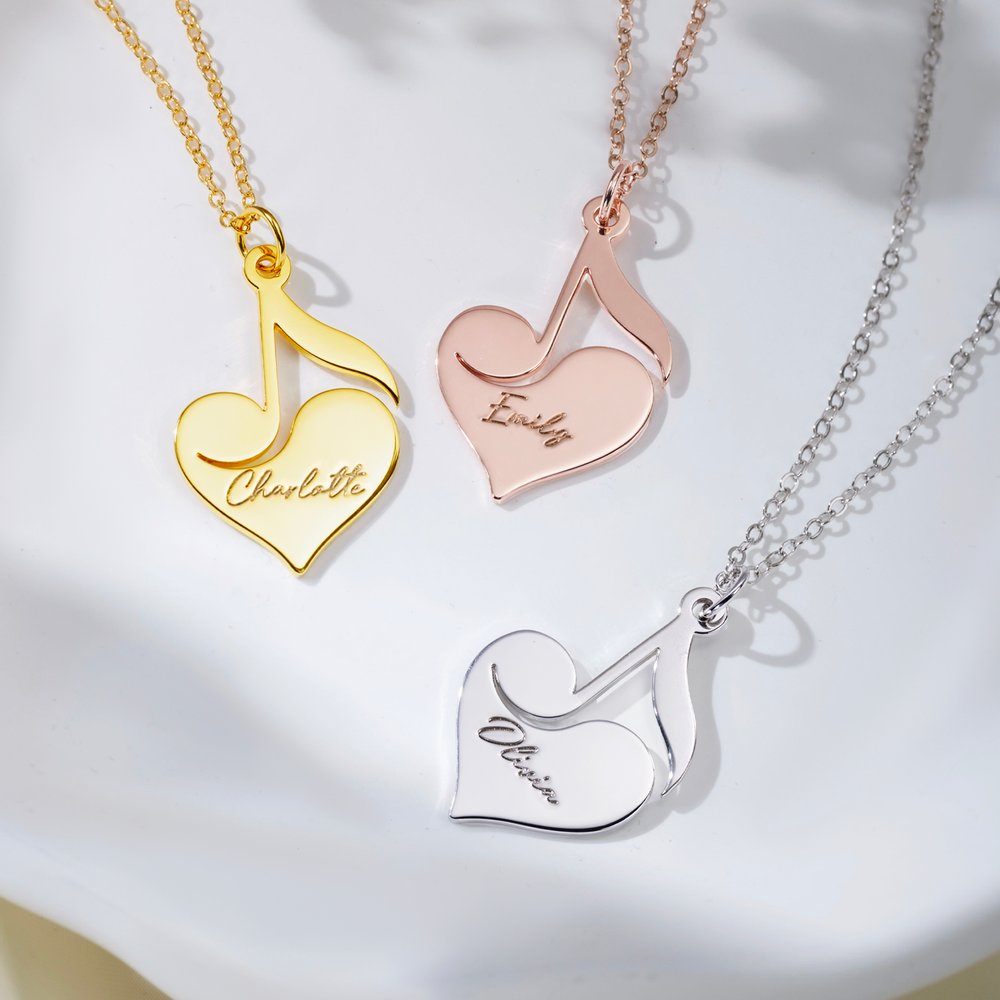 Crafted from high-quality sterling silver or brass, it boasts durable, wear-resistant construction that retains its lustrous finish even with prolonged wear. Masterful surface craftsmanship ensures smooth contours in the heart and musical note shapes, while engravings remain crisp and precise, resistant to fading or wear. Combining adornment with personalization, it enhances everyday outfits with harmonious elegance while serving as a commemorative token to etch heartfelt sentiments.