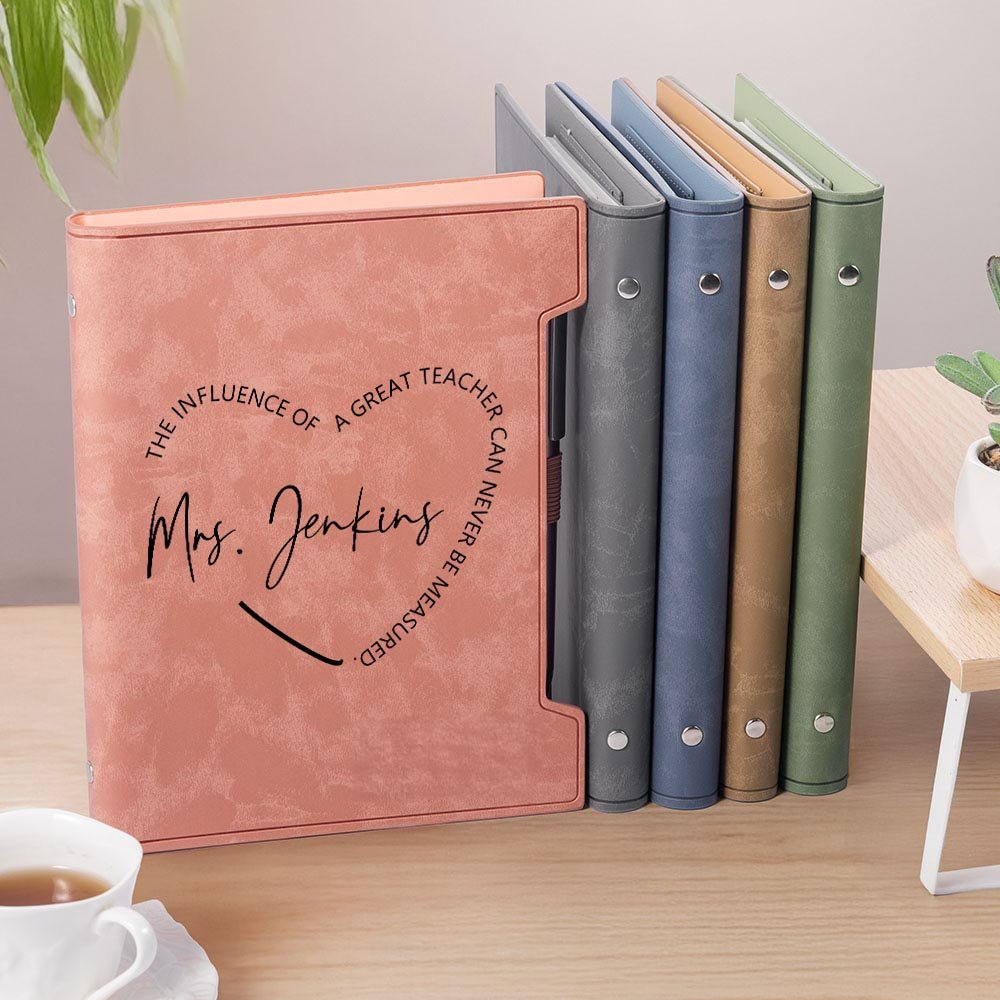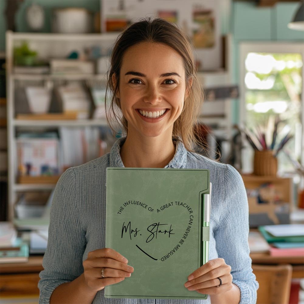 This notebook expresses gratitude with the words "The Influence Of A Great Teacher Can Never BE Measured" wrapped around a heart shape, and is equipped with Personalised services, which can be customized with the teacher's name and title. The overall design is solemn and warm, perfectly interpreting the concept of "education is to influence people with the heart", making an ordinary notebook a special gift for teachers, full of affection.