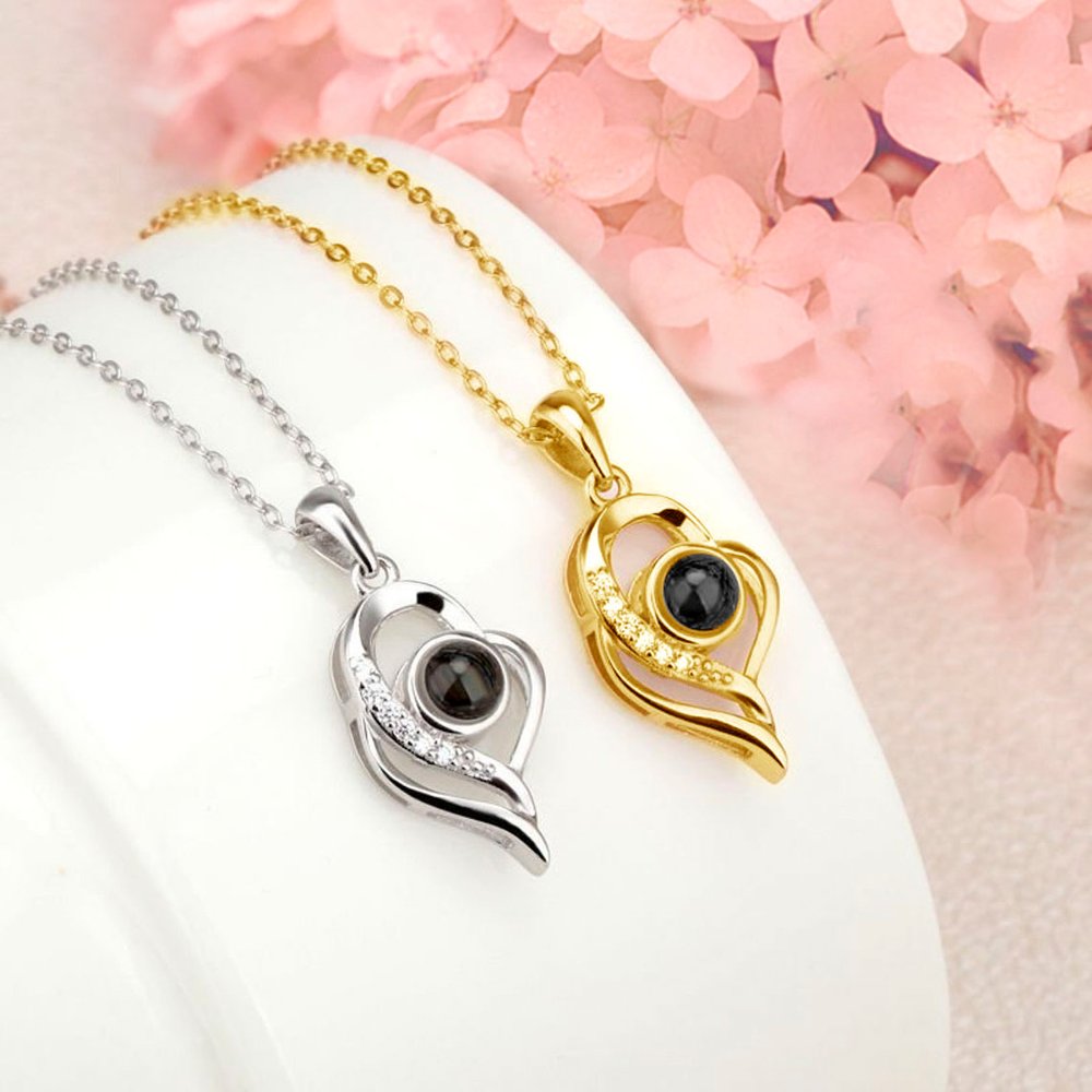 This necklace features a secret hidden message within the central stone that there are visible "I Love You" or "Happy Birthday" in 100 languages when it's projected on a wall through a light shine and you can upload a treasured photo in your life to express your deep love for your beloved through words.