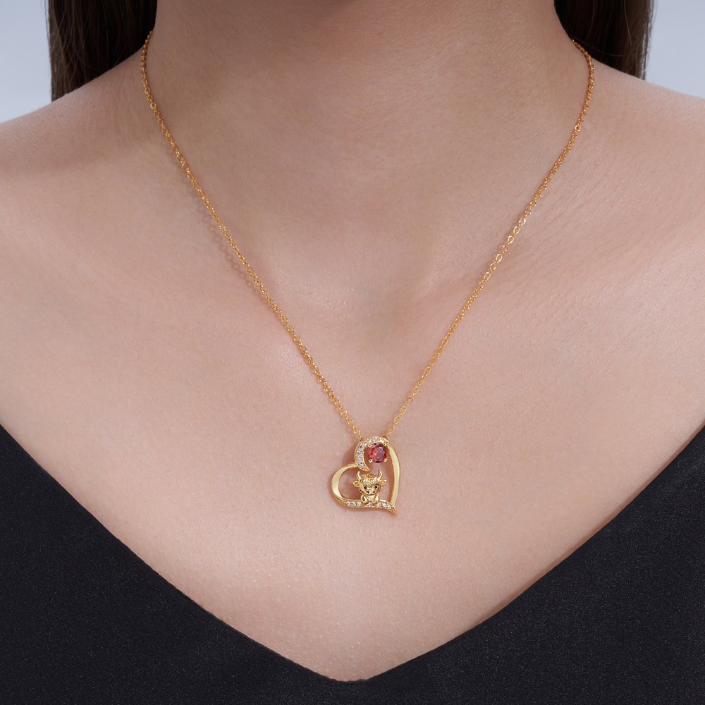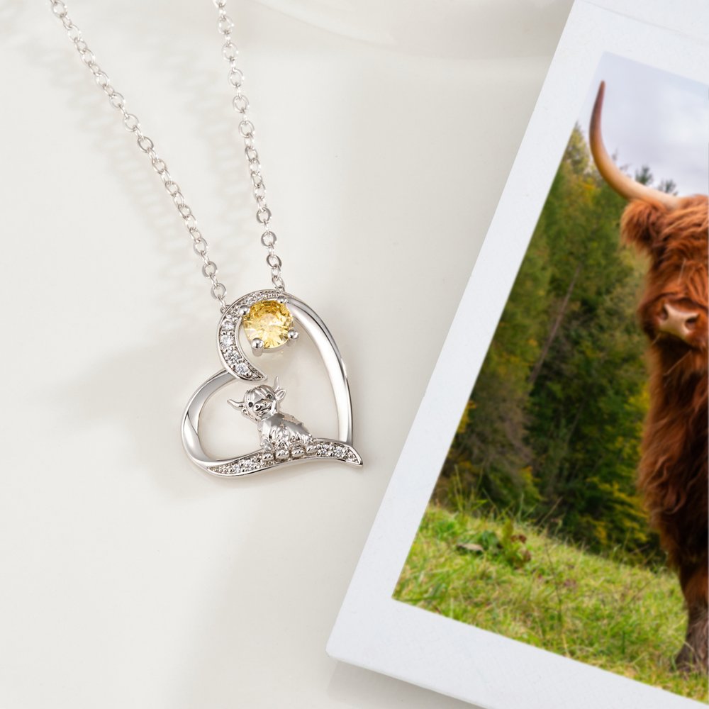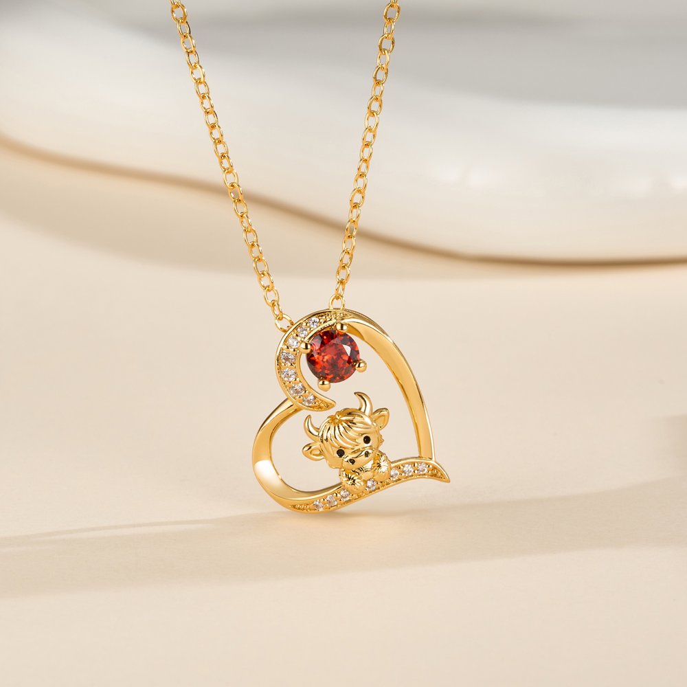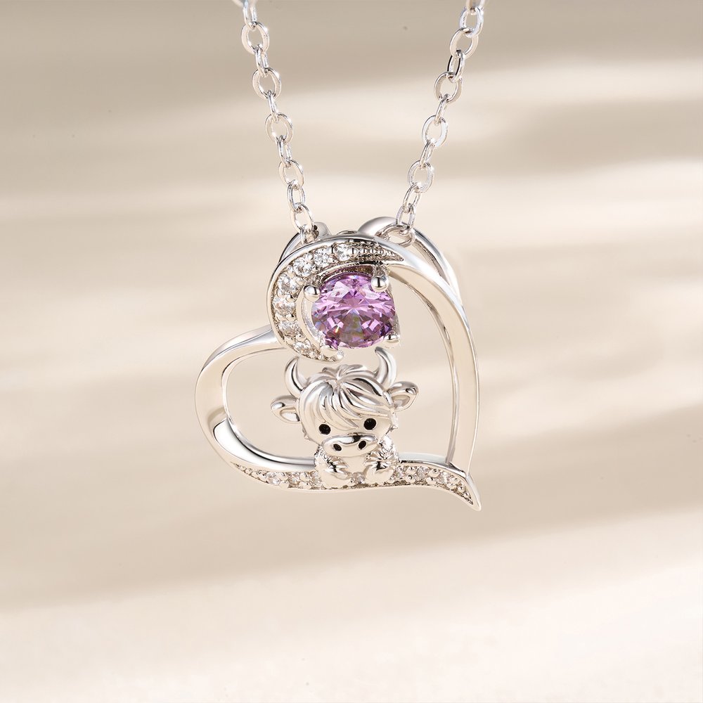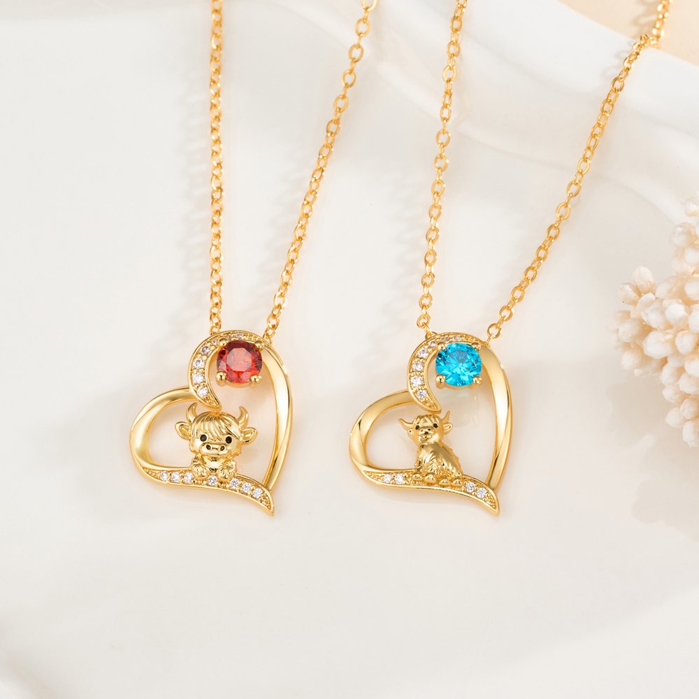 | Feature: | Highland Cow, Birthstone, Heart Necklace |