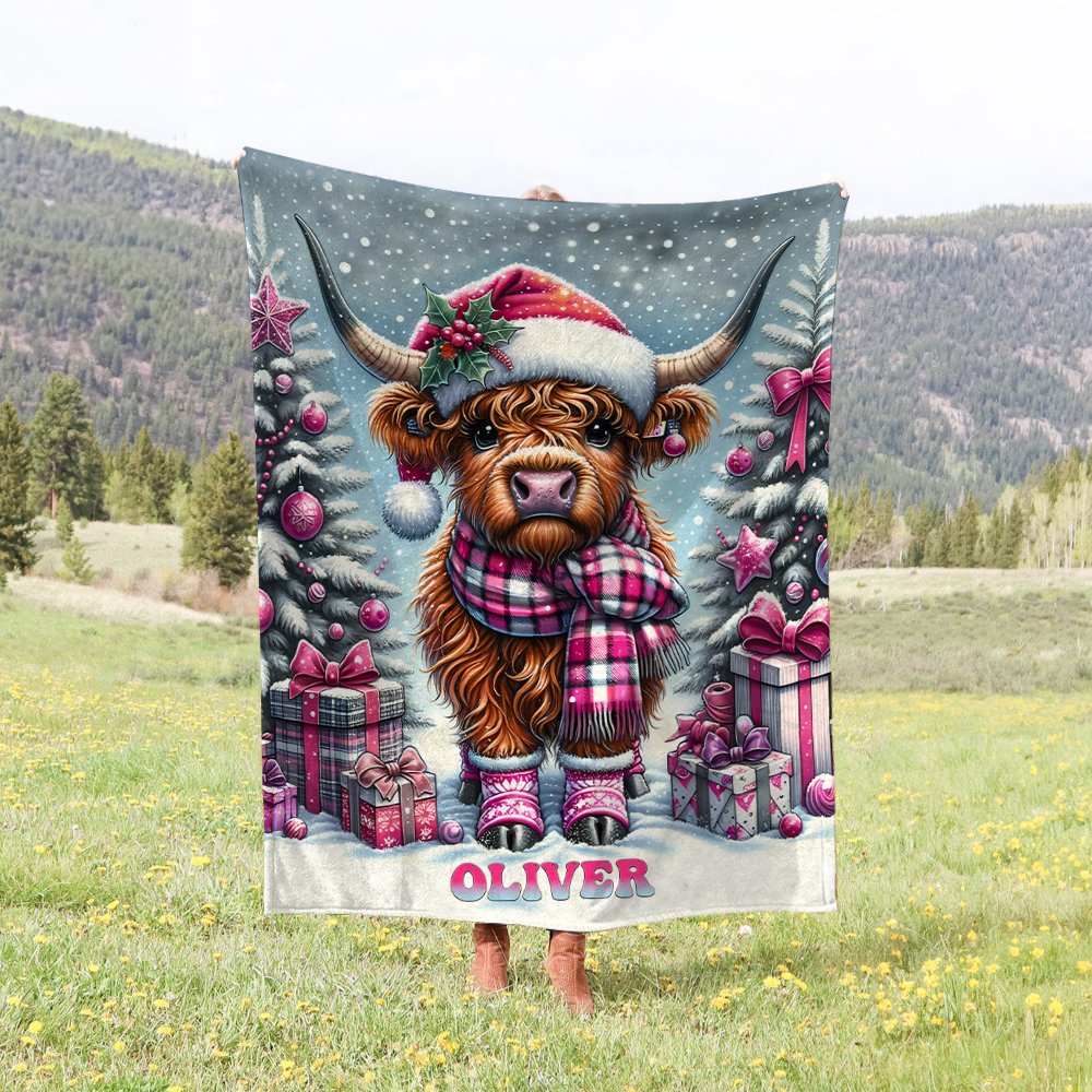 The blanket is featuring a delightful Highland Cow pattern that can be Personalised with a name of your choice. With five font options to choose from, you can create a truly unique and special gift for your loved ones. Available in both fleece and Sherpa, this blanket offers versatility and comfort to suit individual preferences.