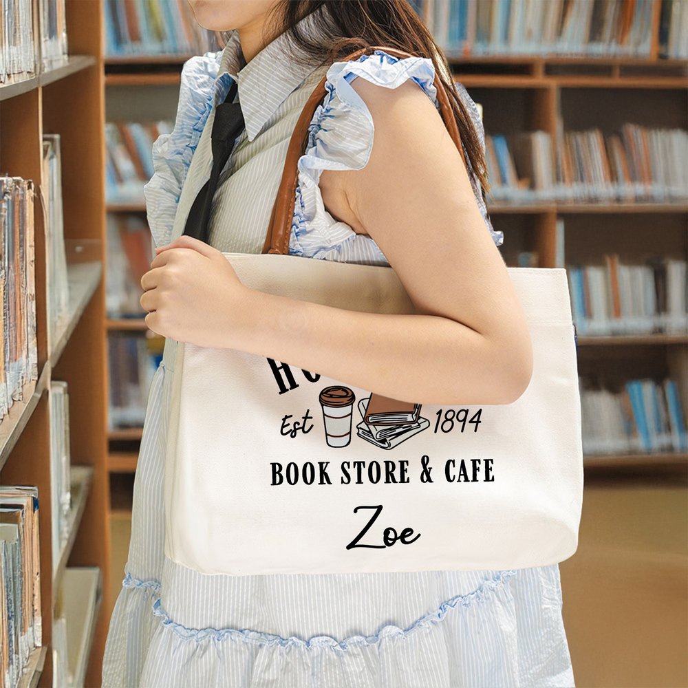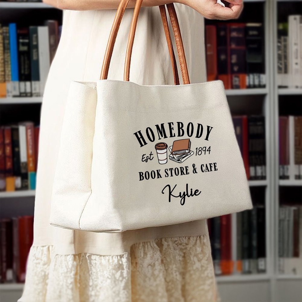 Personalised "Homebody Book Store" Canvas Tote Bag with PU Leather Handle and Name Daily Use Birthday Gift for Bookworms Book Lovers