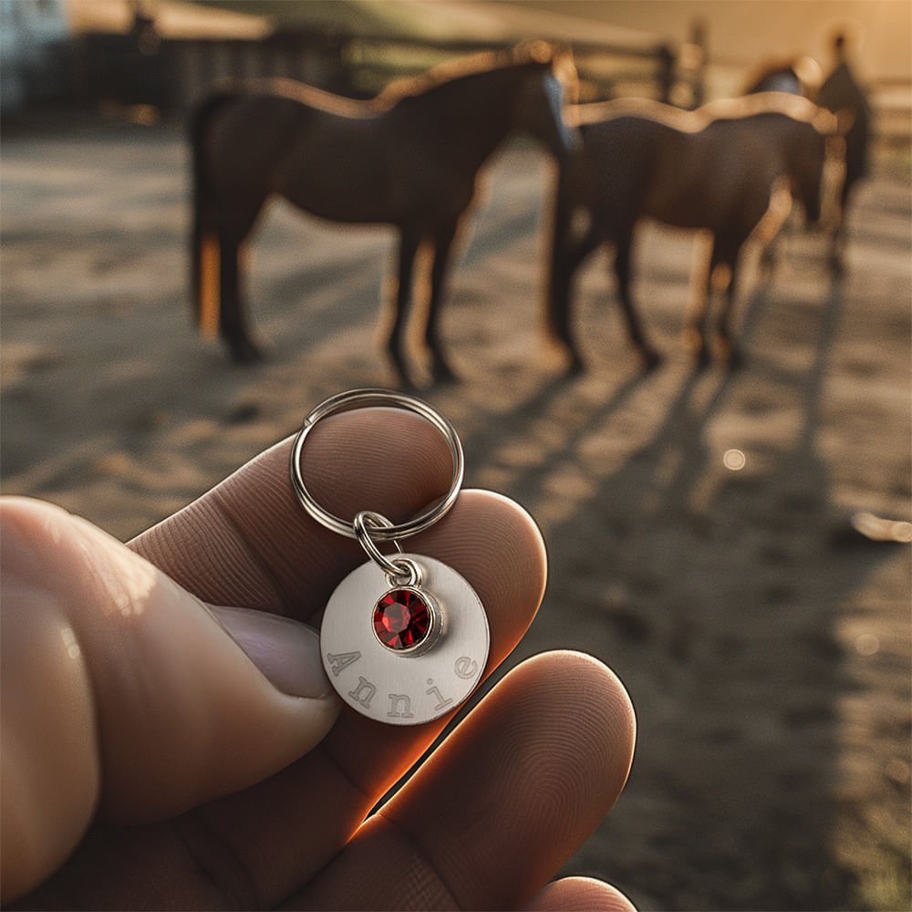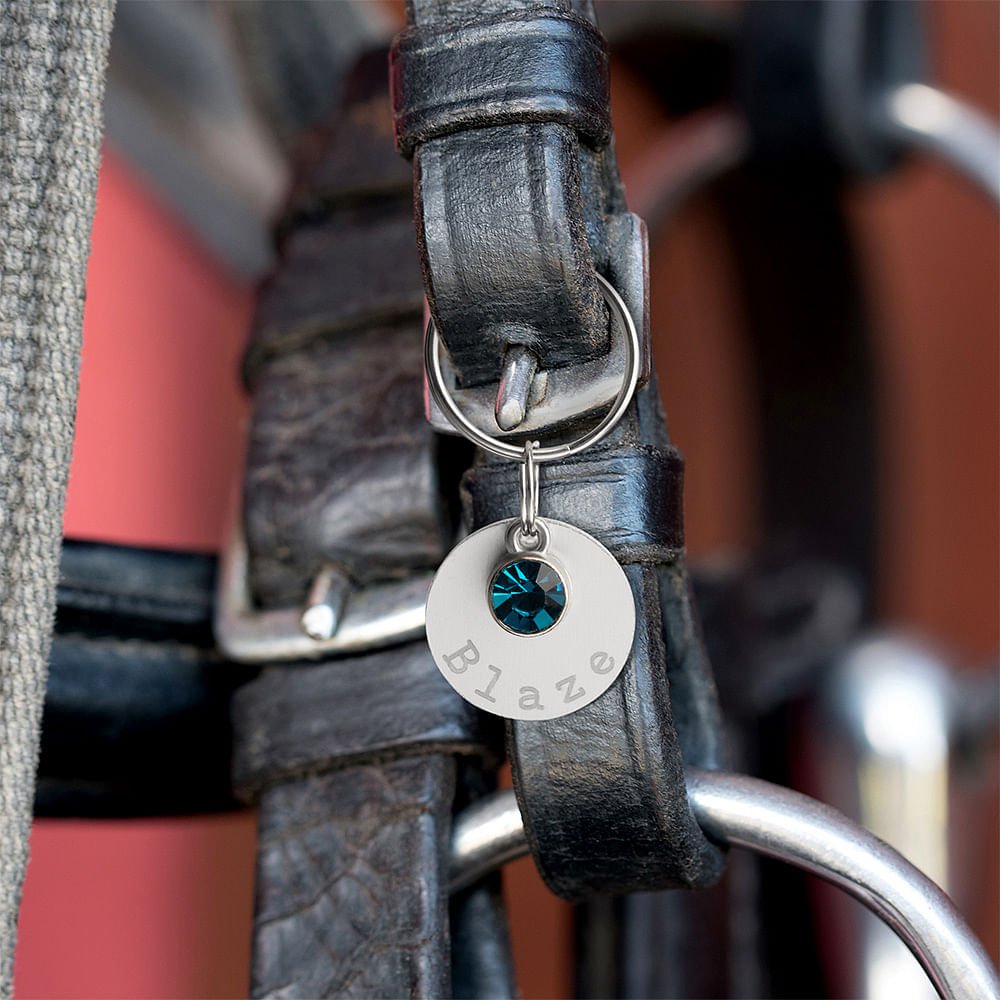 Crafted with meticulous attention to detail, this exquisite horse saddle and bridle charm features a Personalised engraved name and a vibrant gemstone, making it a truly unique and cherished accessory for equestrians.