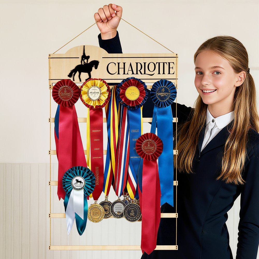 This display holder features an easy-to-hang, expandable, and stylish wall-mounted design. Not only is it suitable for hanging equestrian ribbons and badges, but it also serves as a decorative piece in your living room, study, bedroom, or office. Uniquely showcase your equestrian achievements, ensuring each memory is worth cherishing. Additionally, the flexible design of each tier accommodates various display needs, making it perfect for different events or activities.