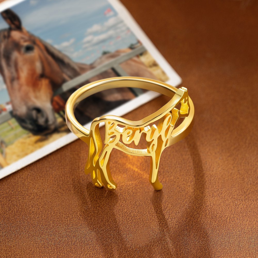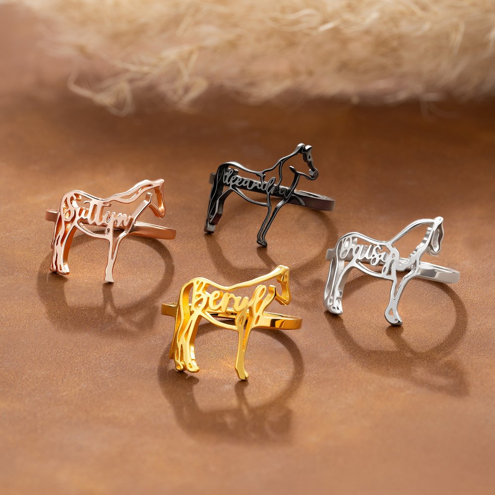 Our rings provide up to 16 different horse outline designs to capture the exclusive memories of different horse owners for their horses. Each model can be customized with the name to reflect the unique emotions between the horse and the owner. Whether it is running, raising its hoof, or standing gently, there is always an image that fits your horse.