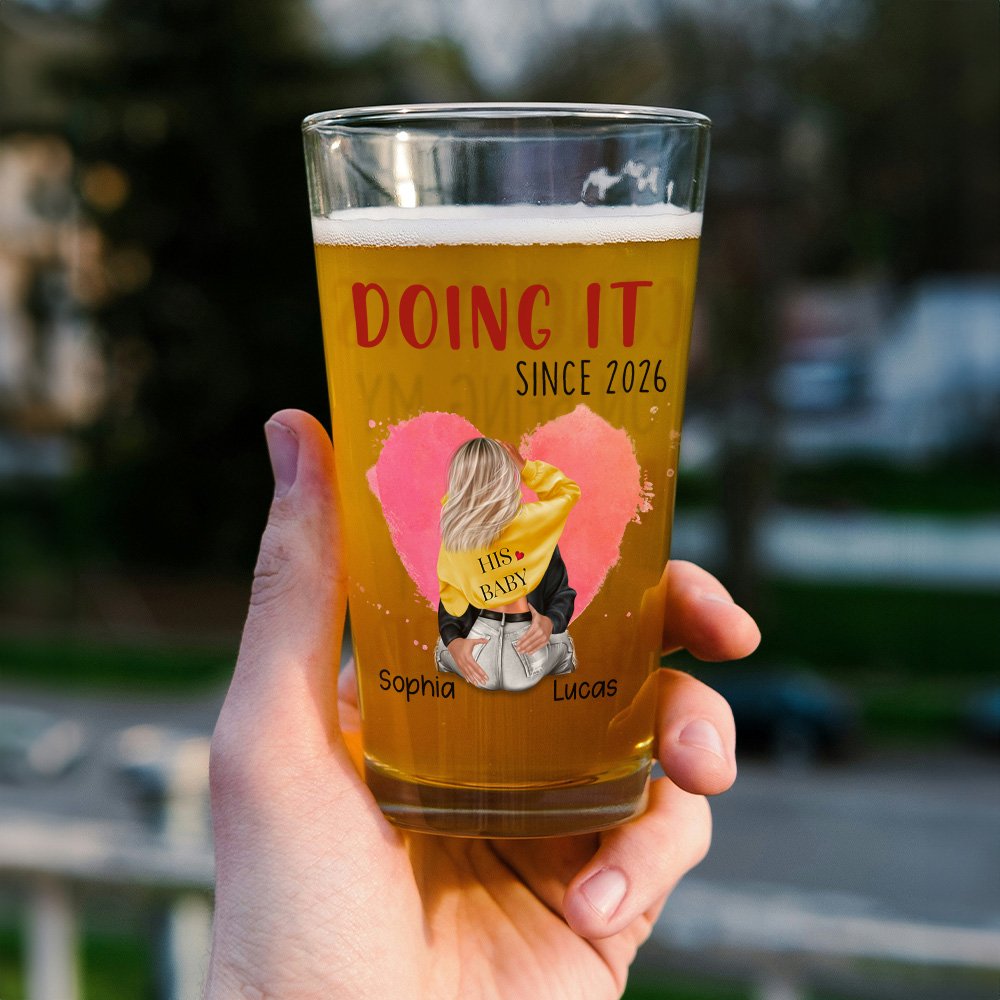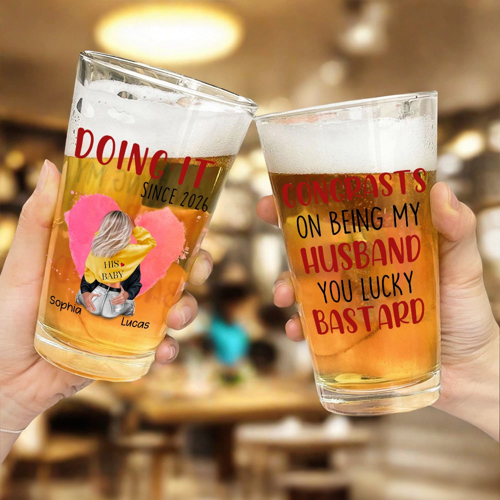 This beer glass has designs on both sides. One side is a sweet and romantic hugging couple with different backgrounds. You can customize your names and years. The other side is the affectionate copywriting of "Congratulations on being mine...you lucky bastard," showing the beautiful love between you.