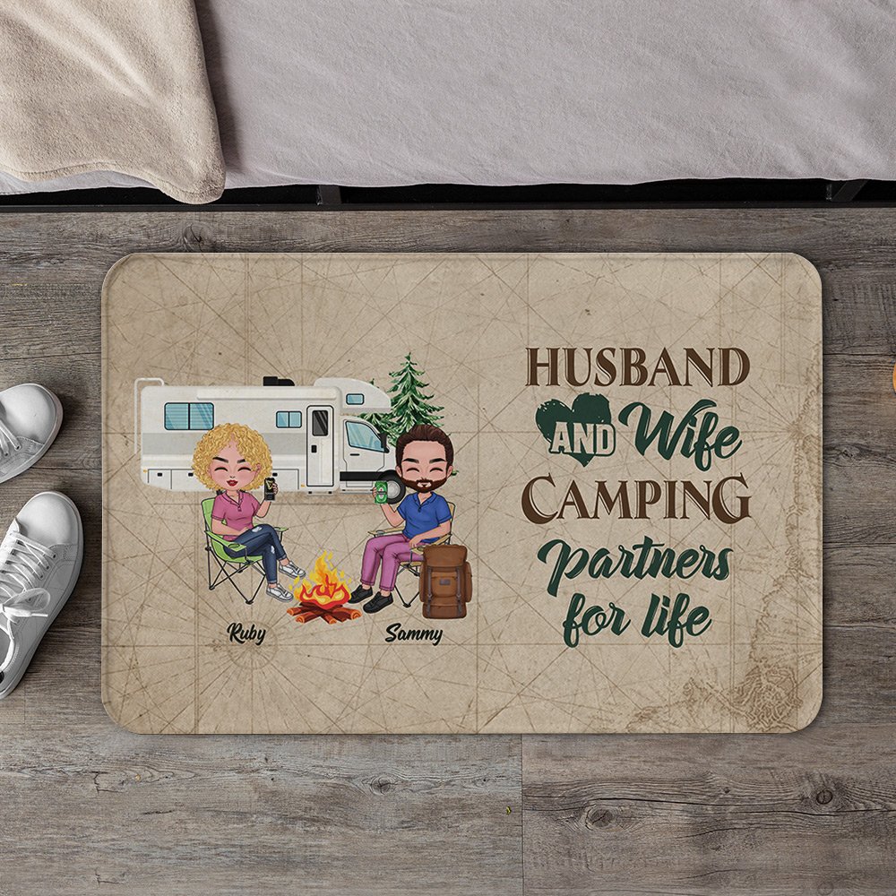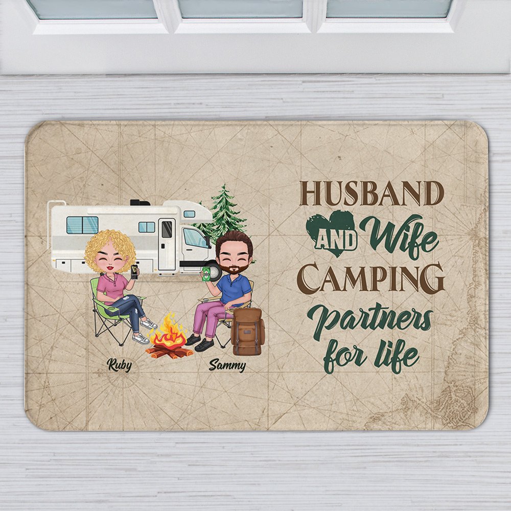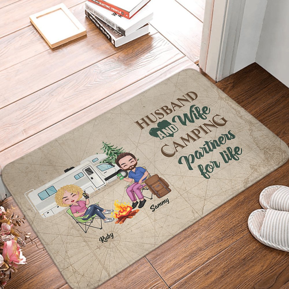 The message "Husband And Wife Camping Partners for Life" is beautifully printed on the doormat, reminding the couple of their everlasting love and the adventures they have shared.