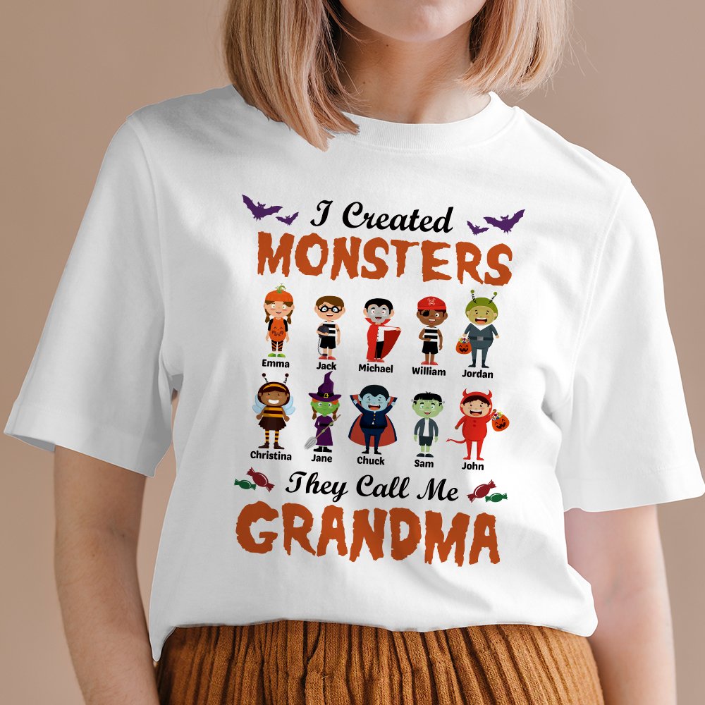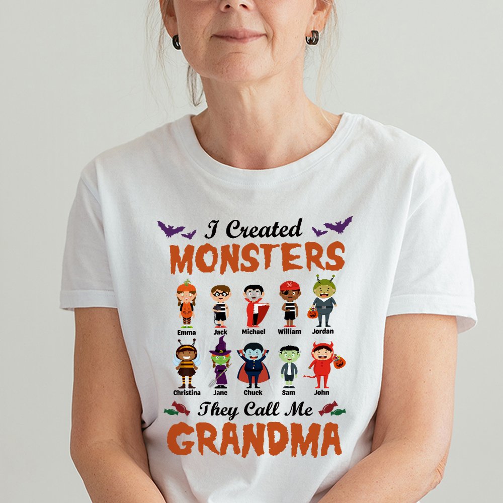 This spooky with designs of printing " I Created Monsters They Call Me Grandma" is fun for Halloween festivities, you can custom kid monsters characters and titles as you want, it must be well exactly what you expected Halloween gift for Mom Grandma Mimi Nana shirt.