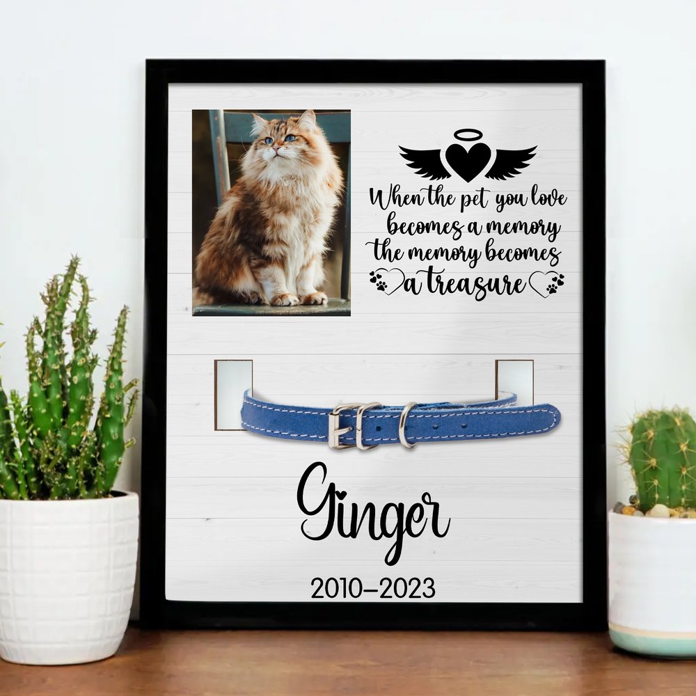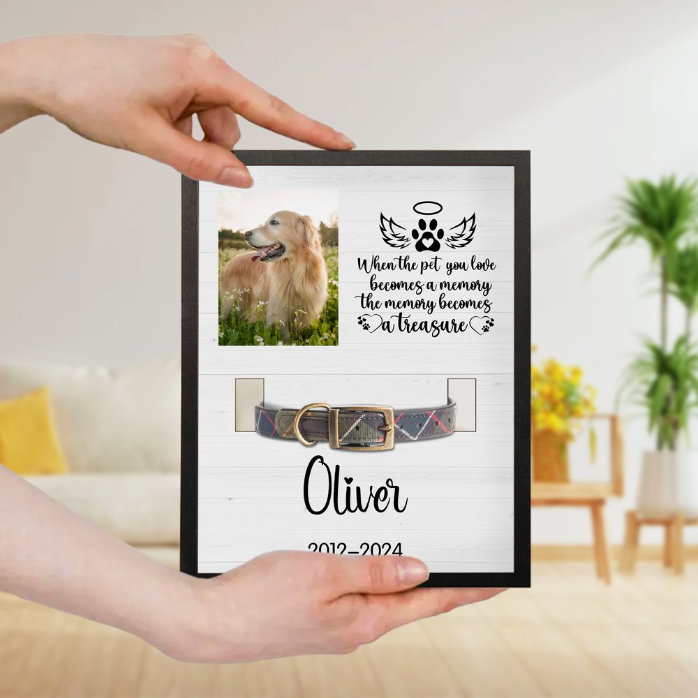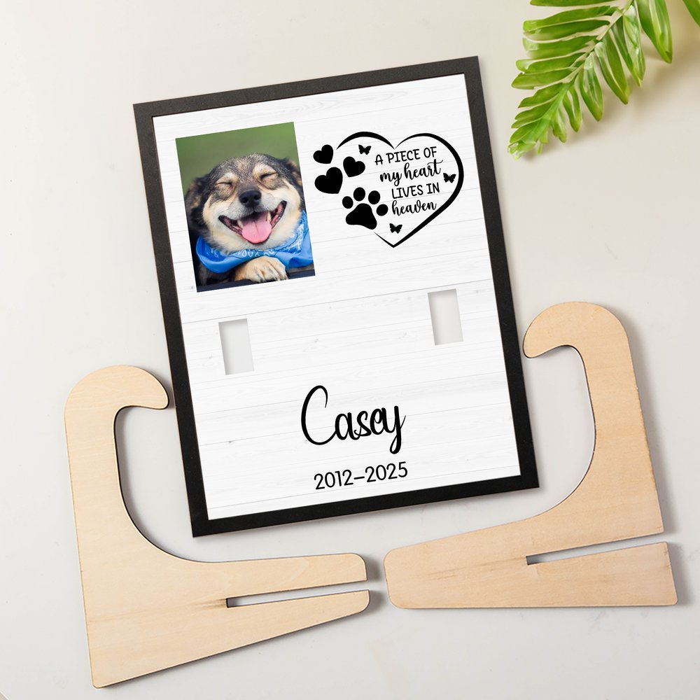This commemorative collar frame features 12 different fixed texts, customizable with your pet's photo, name, and date of birth and death, making each commemoration feel personal.