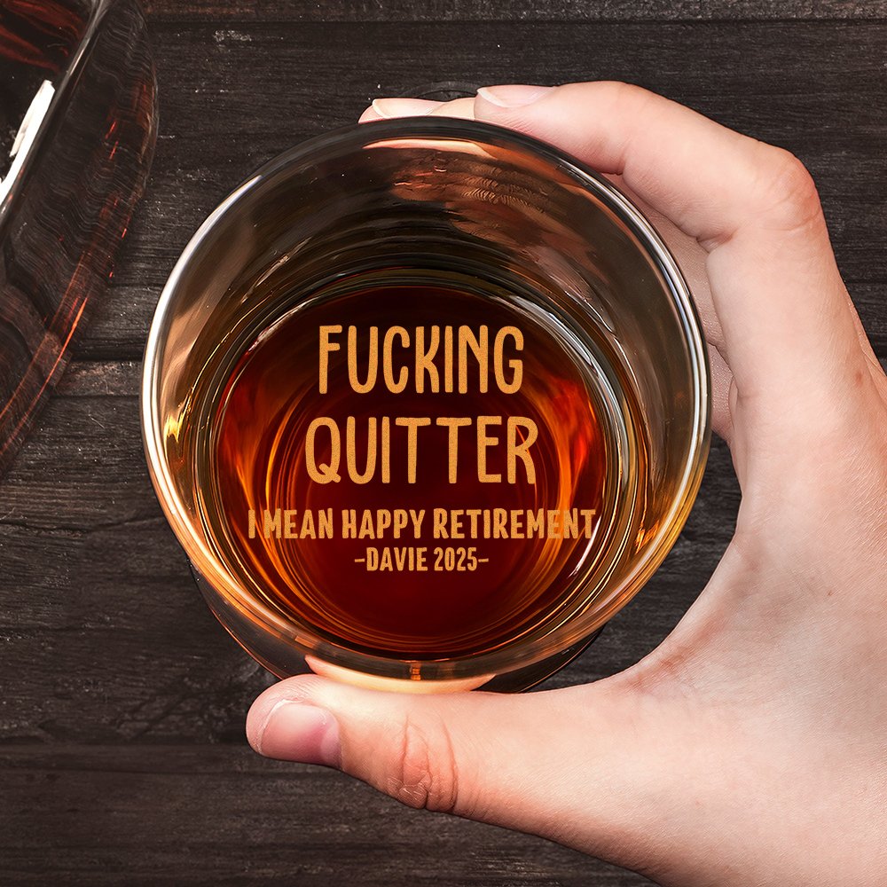 Raise a toast to the retiree in your life with our Personalised "Fucking Quitter, I Mean Happy Retirement" whisky glass. Add a customized text for a one-of-a-kind gift. This unique glass is a great way to honor their years of hard work and dedication while adding a touch of fun to their new lifestyle.