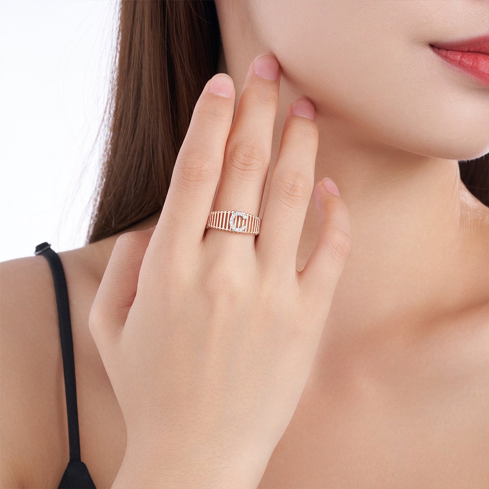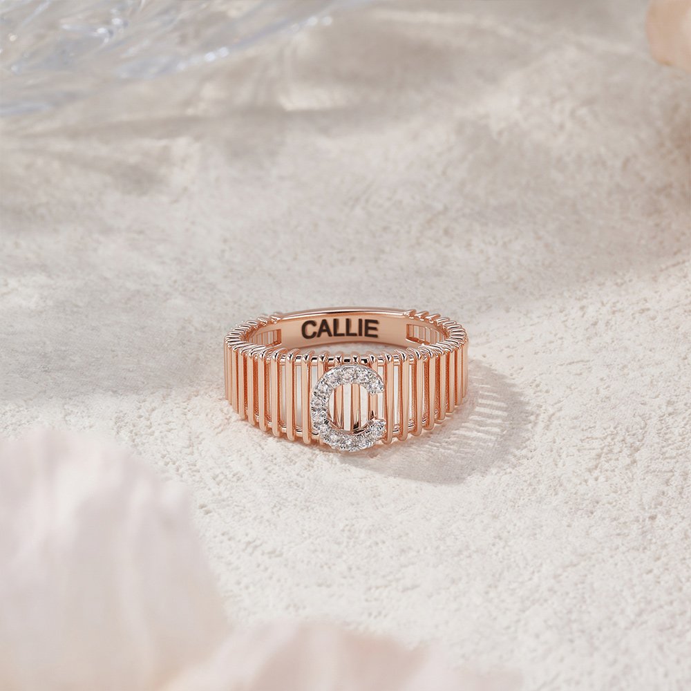 This ring is mainly designed with bar elements and is inlaid with many sparkling diamonds. You can also customize your initials and name to create a unique souvenir for you.