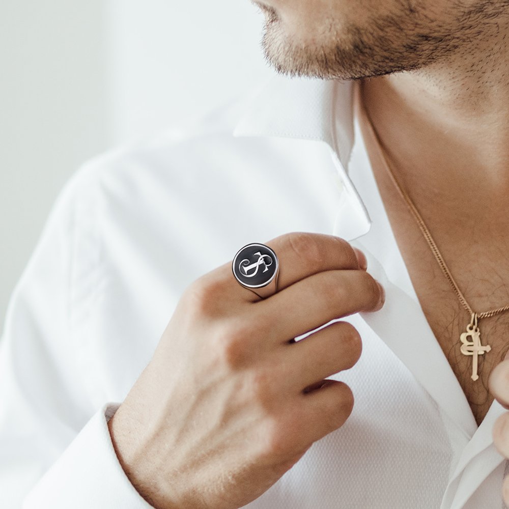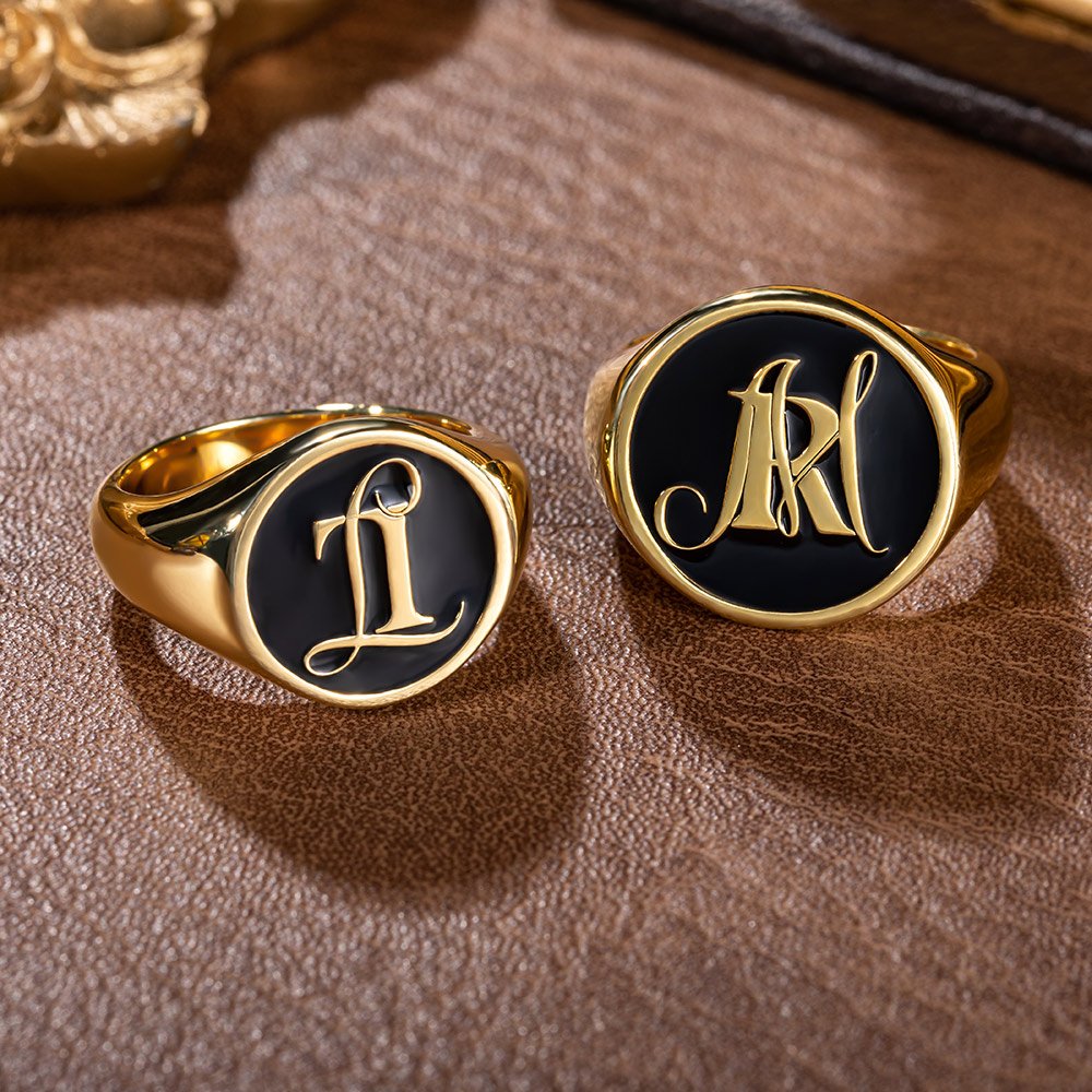 This initials stacked signet ring allows customization of two letters, creating a stacked effect that adds a touch of individuality.