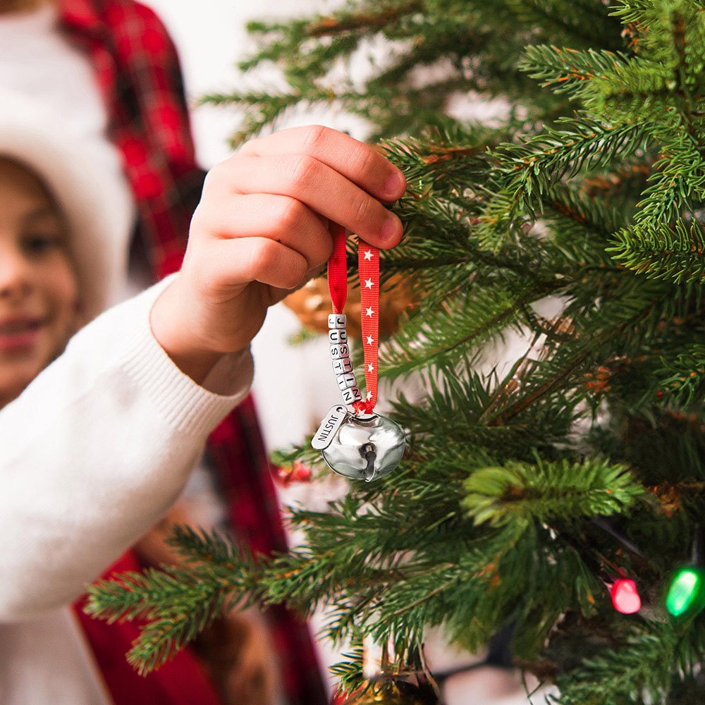 The bell ornament features Christmas design elements and the words "For those that believe the bell will always ring" inspire people. It is the perfect festive addition to your holiday celebrations. Featuring an engraved nameplate, letter beads, and ribbon, this ornament is not only a beautiful tree decoration, but also a warm and thoughtful gift. Its customizable features make it ideal for creating lasting memories with loved ones.