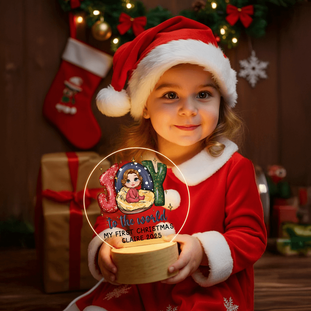 Personalised Joy To The World My First Christmas LED Night Light with Name Year and Wood Base Room Decor Christmas Gift for Newborns Babies