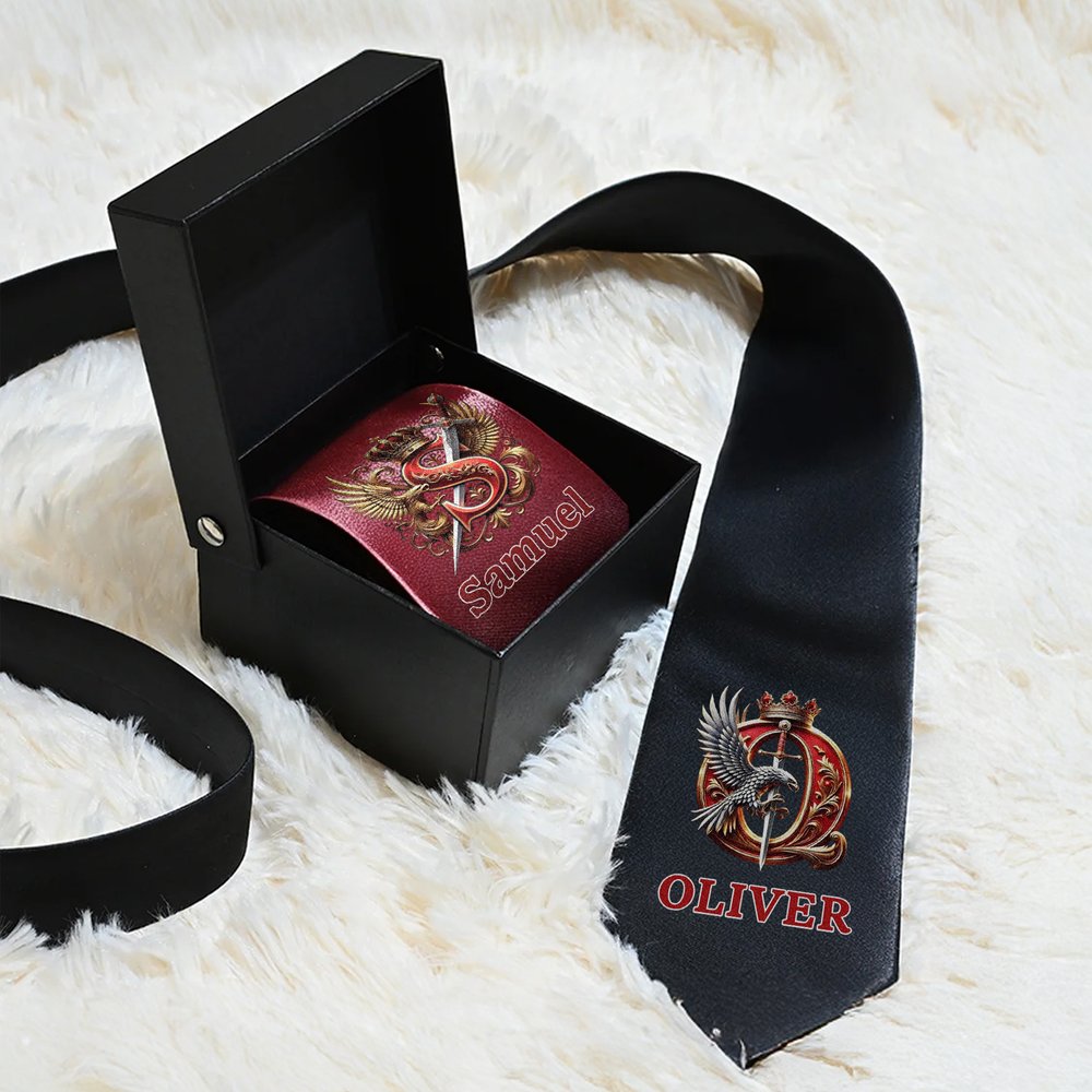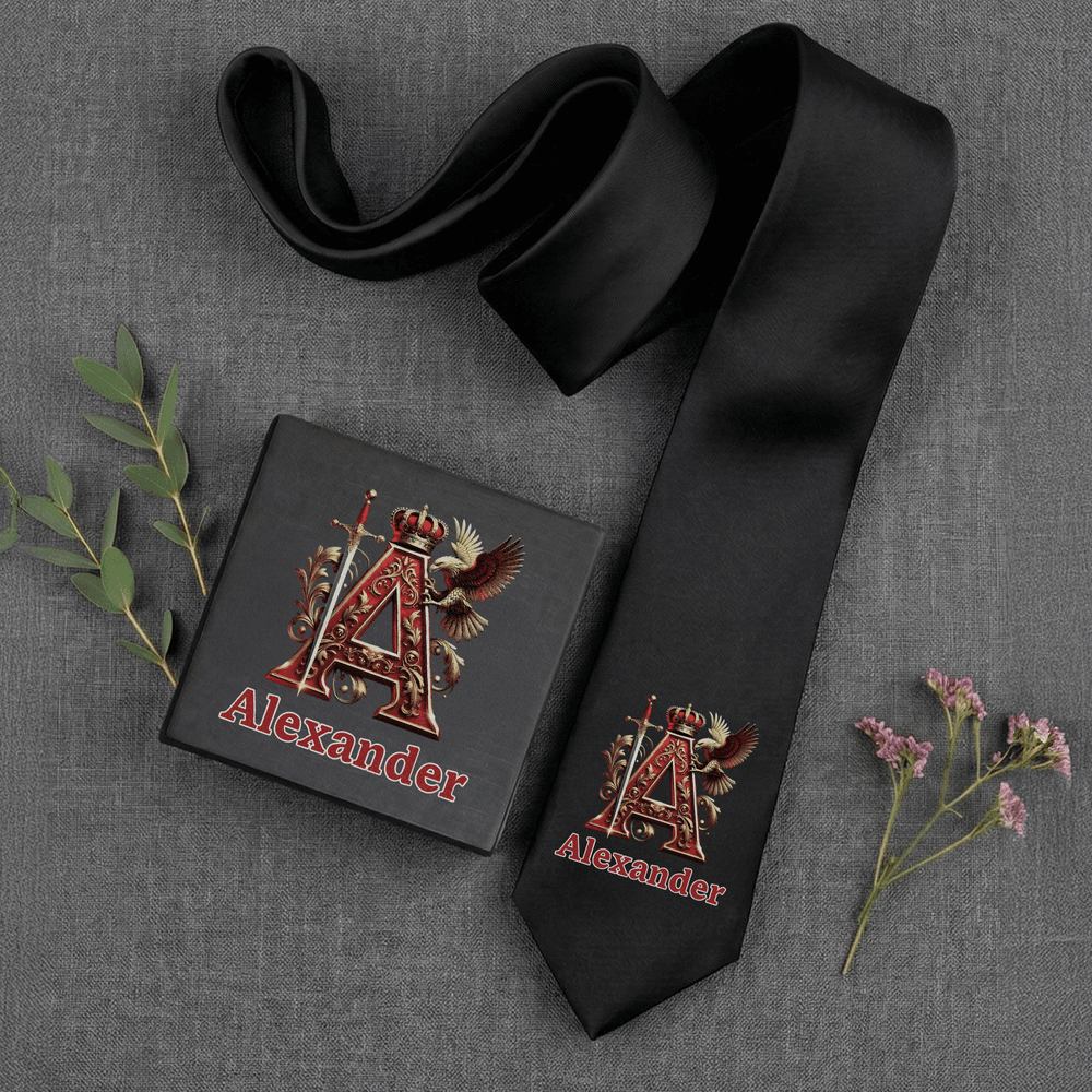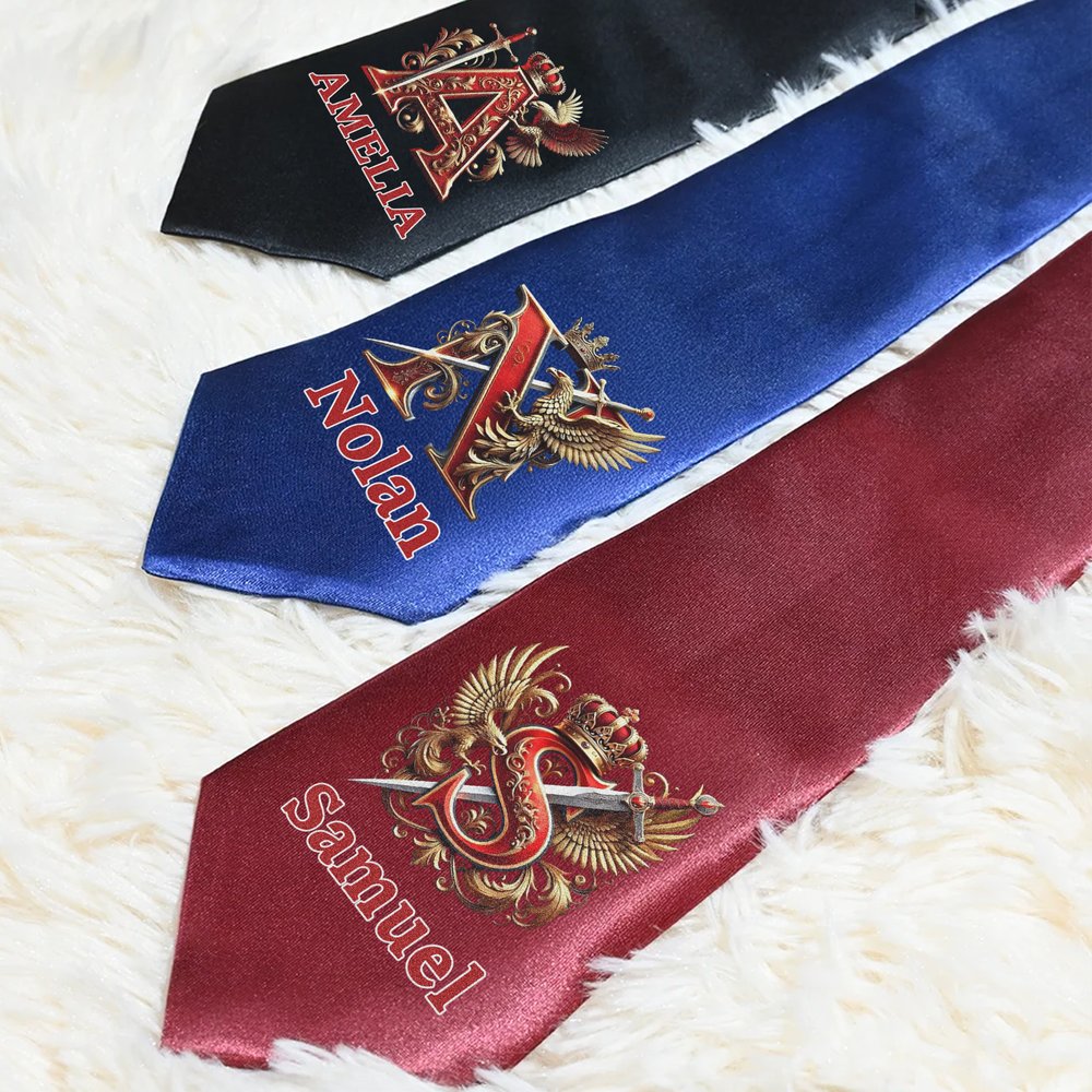 Featuring a stylish knight's badge pattern with a customizable name, available in multiple colors, this tie boasts a simple yet sophisticated style, catering to both formal and casual occasions, effortlessly showcasing a gentleman's refined taste.