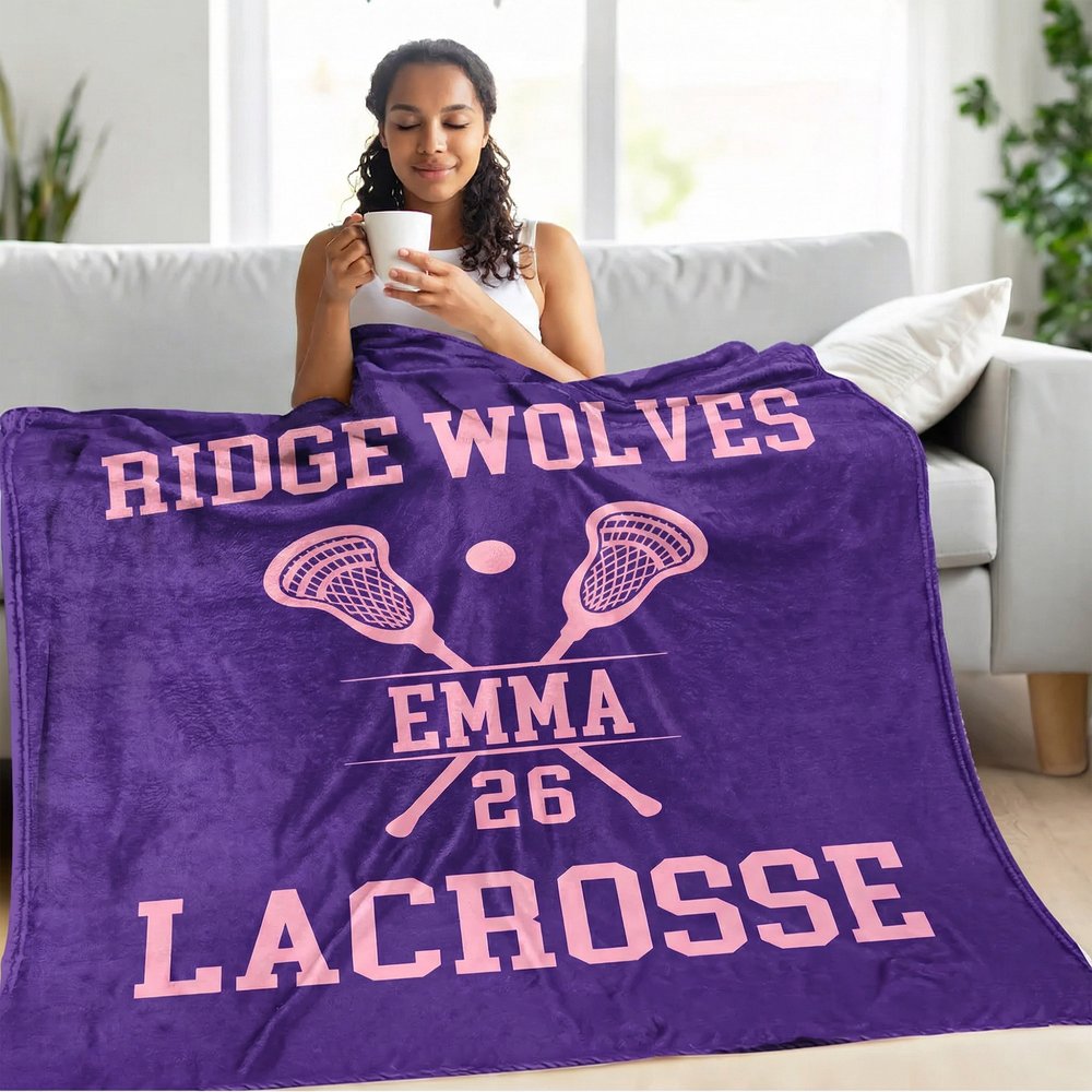 Personalised Lacrosse Multicolor Soft Throw Blanket with Name and Number Game Day Team Gift for Lacrosse Players Coaches