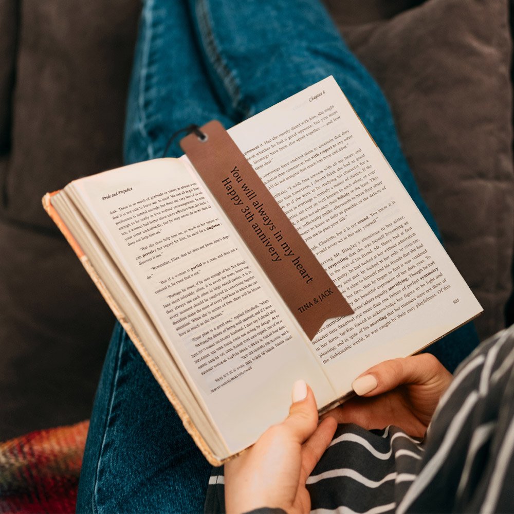 This handcrafted leather bookmark features a Personalised engraved message, making it a truly unique and thoughtful gift for the book lover in your life.