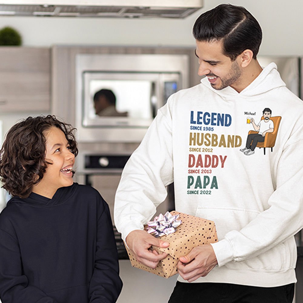 | Feature: | Classic Crewneck, Skin-friendly, Father's Day Theme, Retro Style, Lengend Husband Quote |
