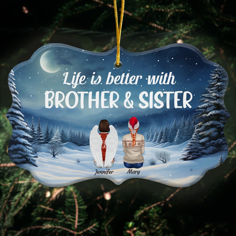The message "Life Is Better With Brother & Sister" is beautifully printed on the ornament, conveying deep emotions between loved ones through simple trinkets.