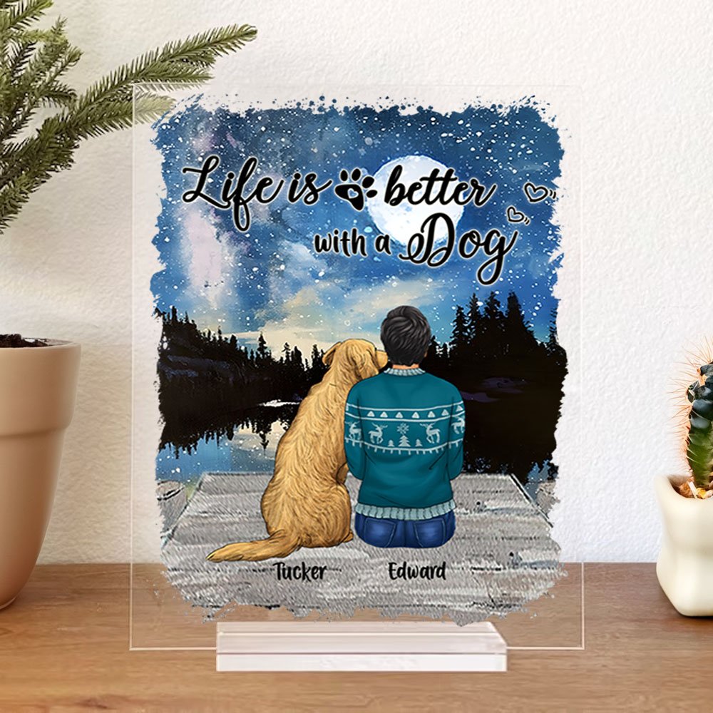 The phrase "Life Is Better With Dogs" celebrates the everlasting love people have for their pets. Have this unique saying printed on the ornament with your and your pet's exclusive name to immortalize this bond that belongs only to you.