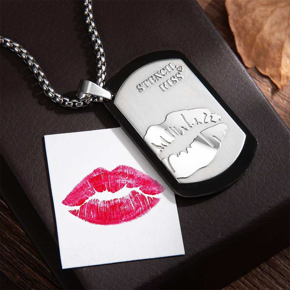 The Personalised lip print necklace is a unique and thoughtful gift for him. With its black and silver color scheme and Personalised text, this necklace is a stylish and personal accessory that will make any man feel special.