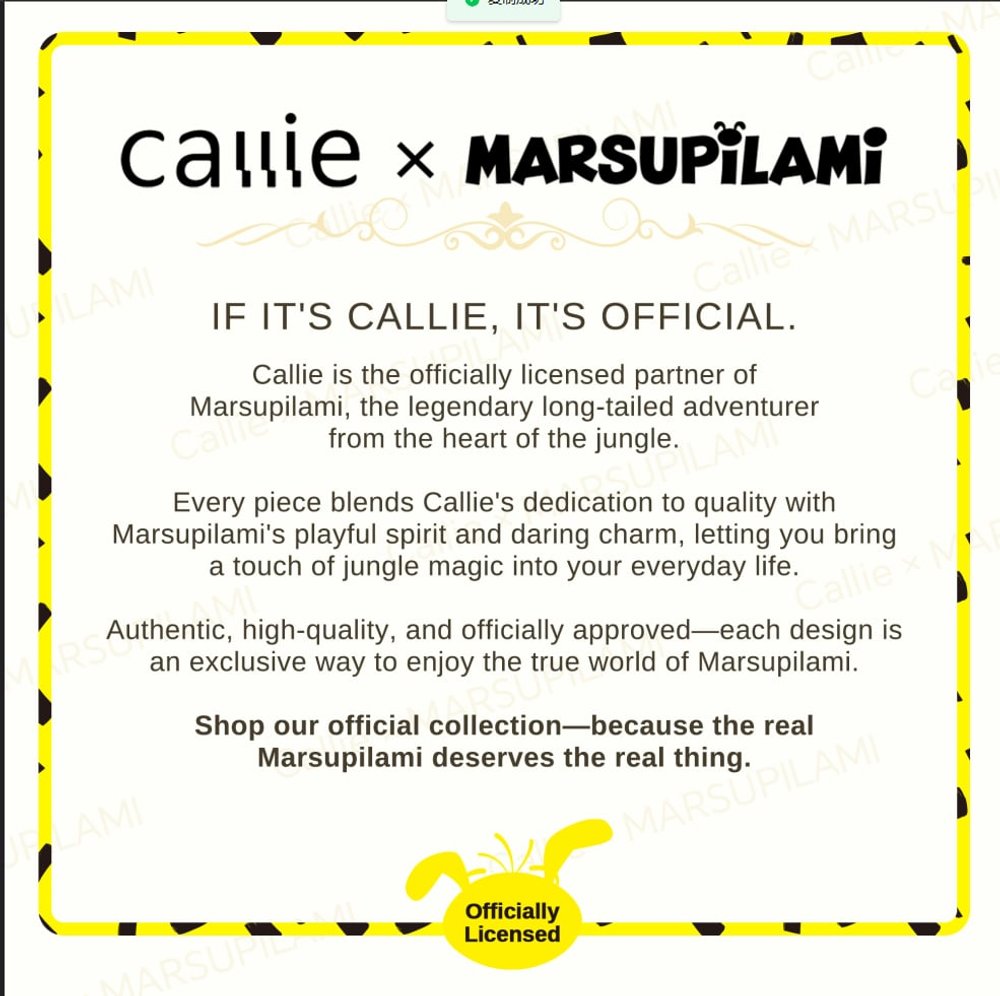 Callie is honored to offer officially licensed Marsupilami® products in collaboration with this iconic Belgian cartoon IP’s rights holder. We craft high-quality products that authentically capture Marsupilami’s timeless charm. It guarantees 100% authenticity—letting you bring home this classic cartoon treasure of joy and nostalgia with complete confidence.