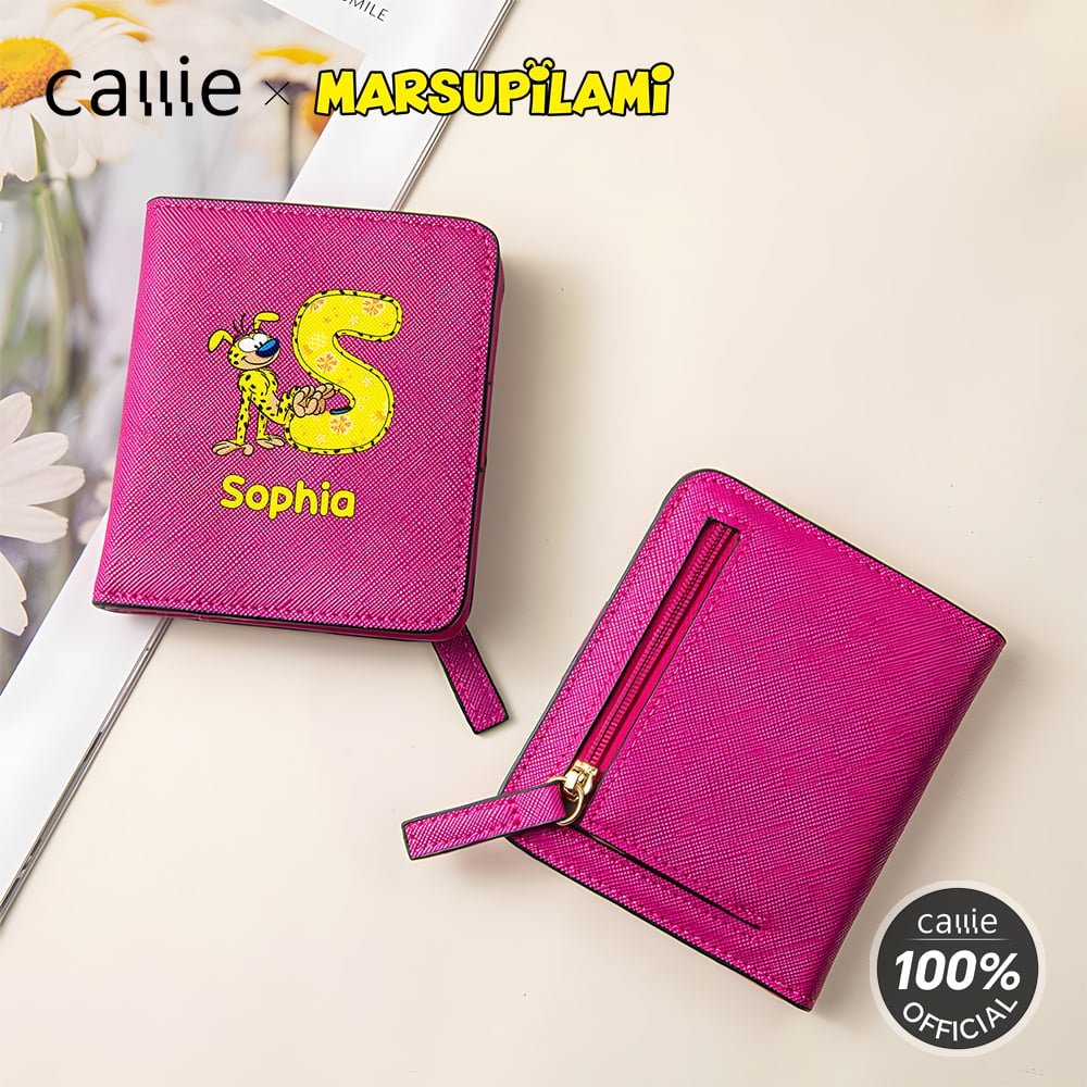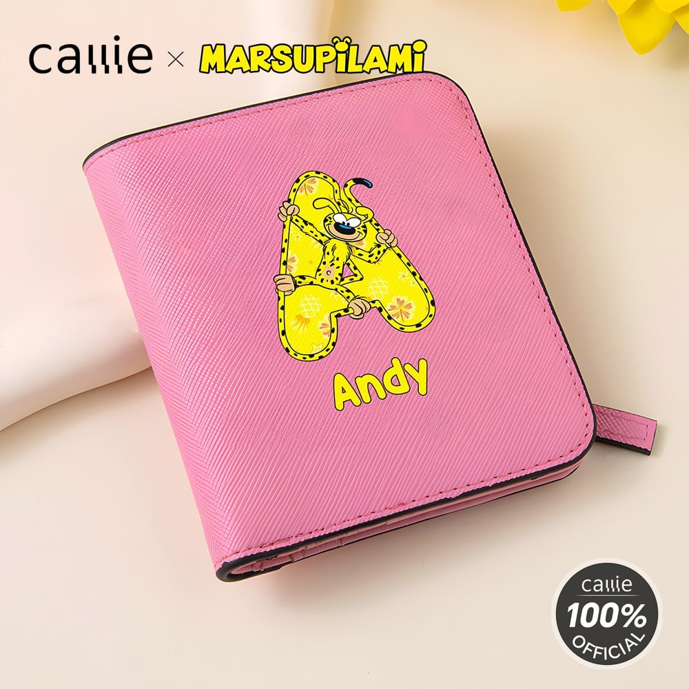 Inspired by the jungle creature known for its yellow fur, black spots, and exceptionally long, flexible tail, this features flowing lines that create a dynamic silhouette. The wallet cleverly combines the adorable Marsupilami character with Personalised initial patterns, supporting custom names. This merges playful charm with individual identity, creating a design that is both whimsical and uniquely personal.