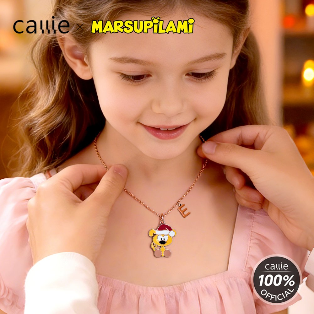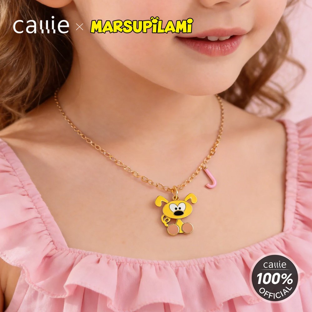 Created by Belgian cartoonist André Franquin in 1952, Marsupilami is a jungle-dwelling creature with yellow fur, black spots, and a super flexible, long tail. Inspired by the signature Marsupilami longtail leopard style, this necklace blends playfulness and elegance. The sleek silhouette makes it a charming statement piece for everyday outfits. The matching initial charm adds a personal touch, with a range of bright colors to choose from.