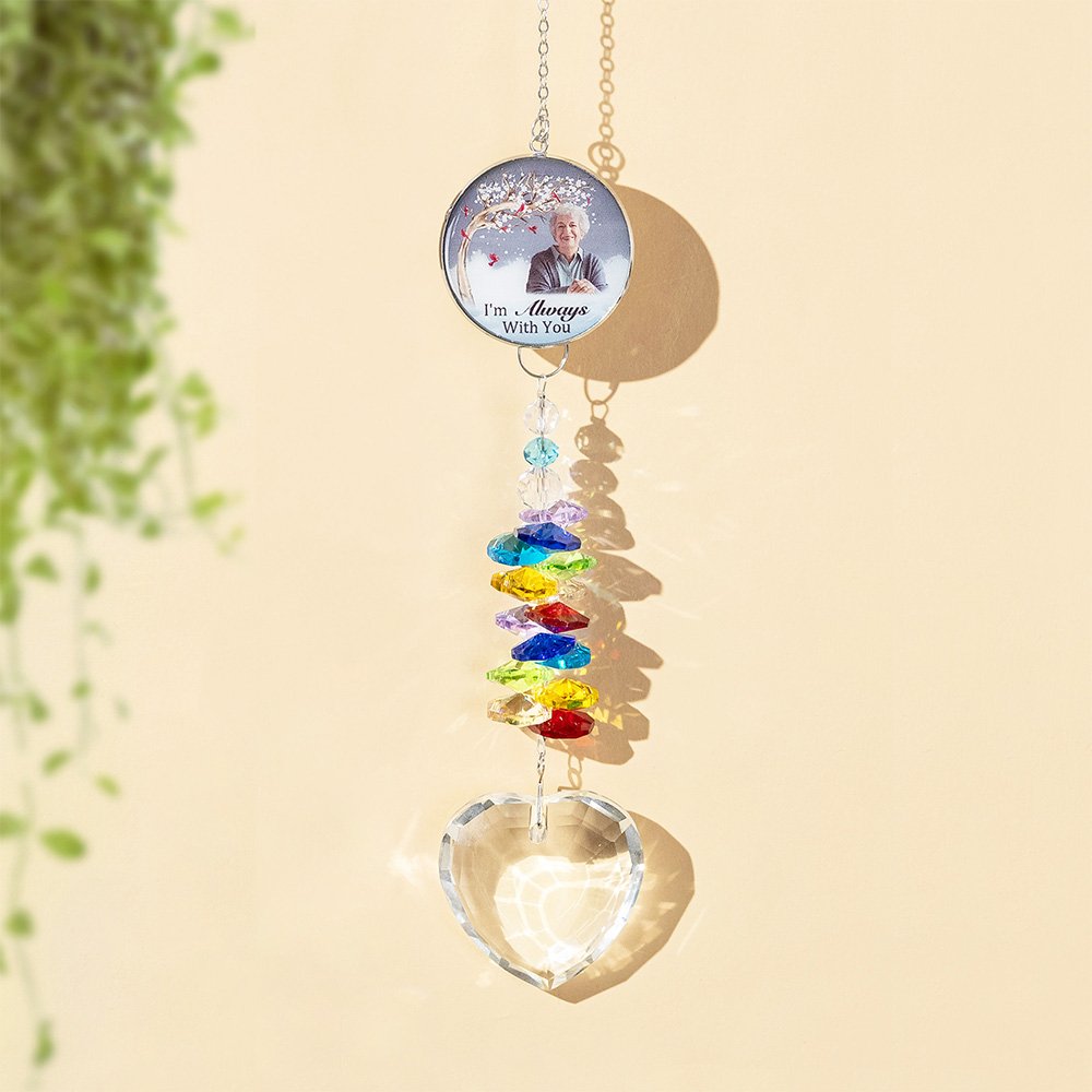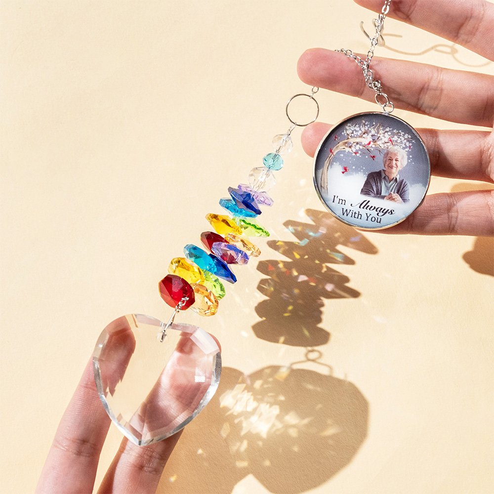 With a stainless steel nameplate symbolizing the Tree of Life and the Cardinal Bird at its core, this light-catcher pendant is paired with a clear heart crystal ball and a waterfall of colorful crystal prisms. The overall design of this pendant is full of profound memorial significance. When sunlight passes through the crystal, it refracts the warm and gorgeous light effect, much like the guardianship and companionship of your loved ones. Supporting customized photos or memorial texts, or names of people in the family, the invisible thoughts are transformed into touchable memorial carriers, so that every detail speaks of love and nostalgia.